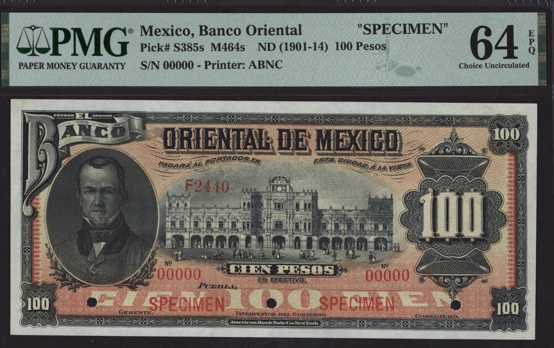 [Top Pop] specimen 100 Pesos, ND (1901-14), serial number 00000 F2440,