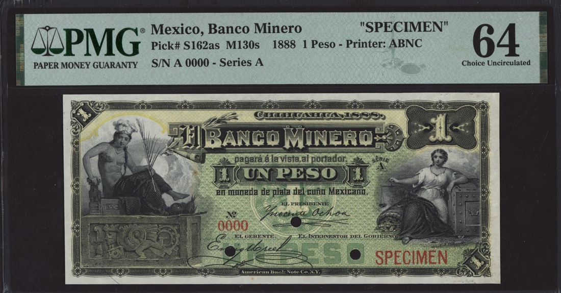 [Top Pop] specimen 1 Peso, 1888, serial number A 0000,