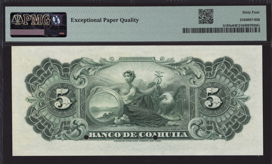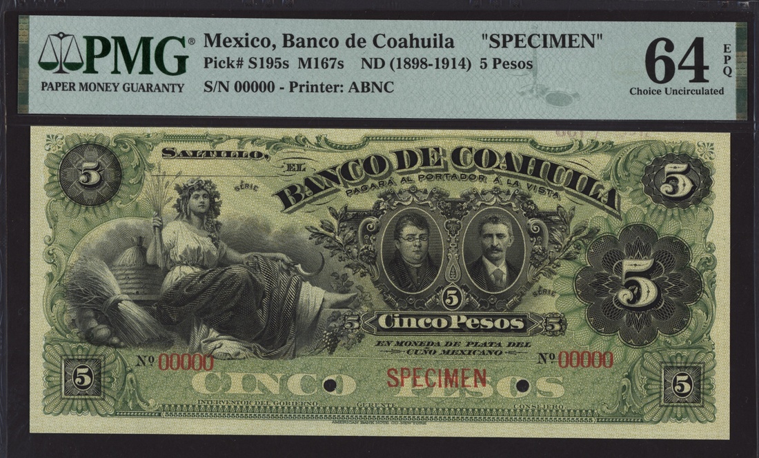 specimen 5 Pesos, Saltillo, ND (1898-1914), serial number 00000,