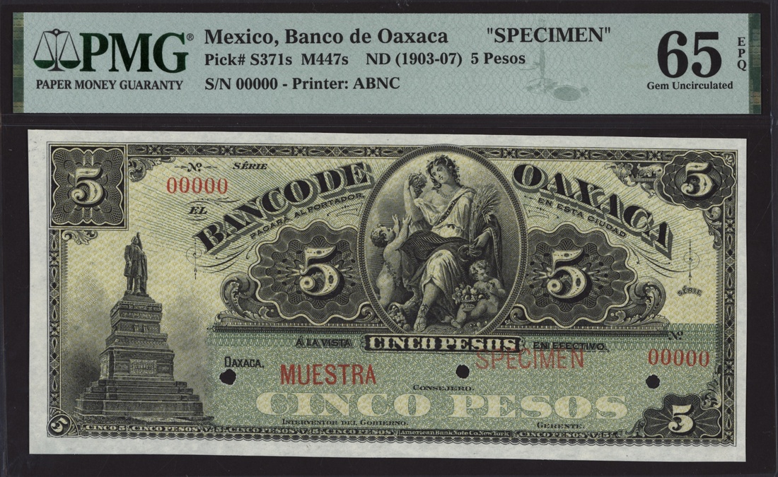 specimen 5 Pesos, ND (1903-07), serial number 00000,