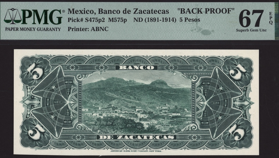 [Top Pop] reverse proof 5 Pesos, ND (1891-1914),