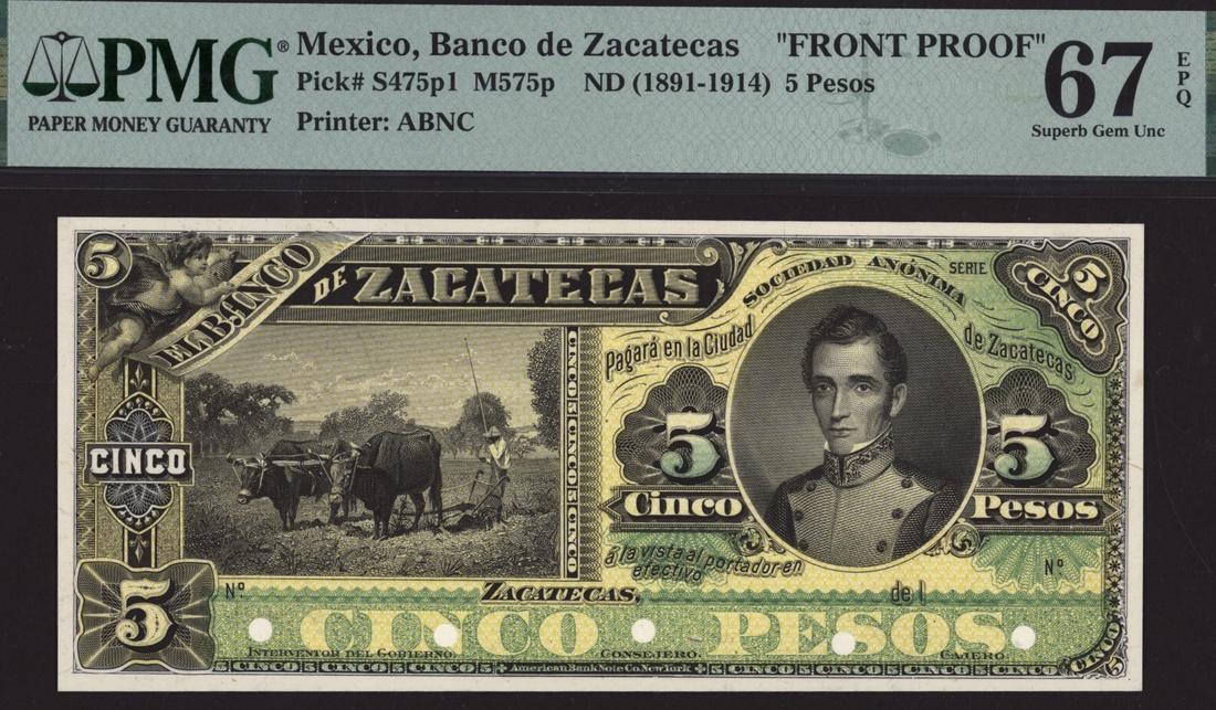 (Pick S287p1, S475p1, S475p2, M348p, M575p), in PMG holder 67 EPQ Superb Gem Uncirculated (2), 66 EPQ Gem Uncirculated (1), all 3 notes are Top Pop, obverse proofs are also single finest graded at PMG
