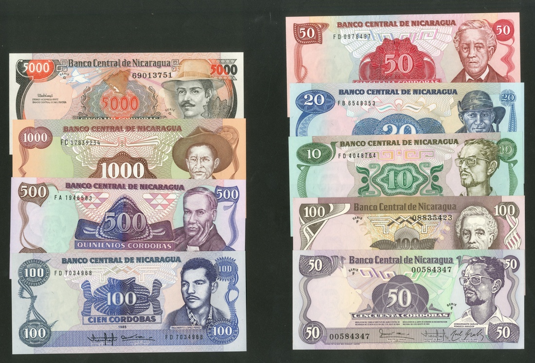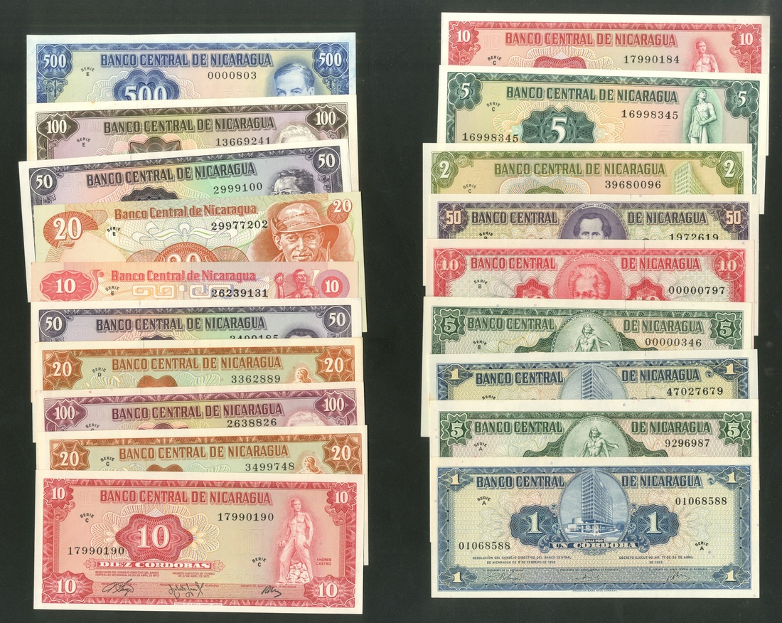 Nicaragua, [48 notes] 1 to 5000 Cordobas, 1938-85, (Pick 79 to 157), fine to uncirculated (48 notes)