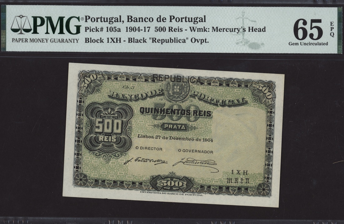 (x) Banco de Portugal, 500 Reis, Ch.3, 27th December 1904, Block 1XH, with Black "República" Overprint