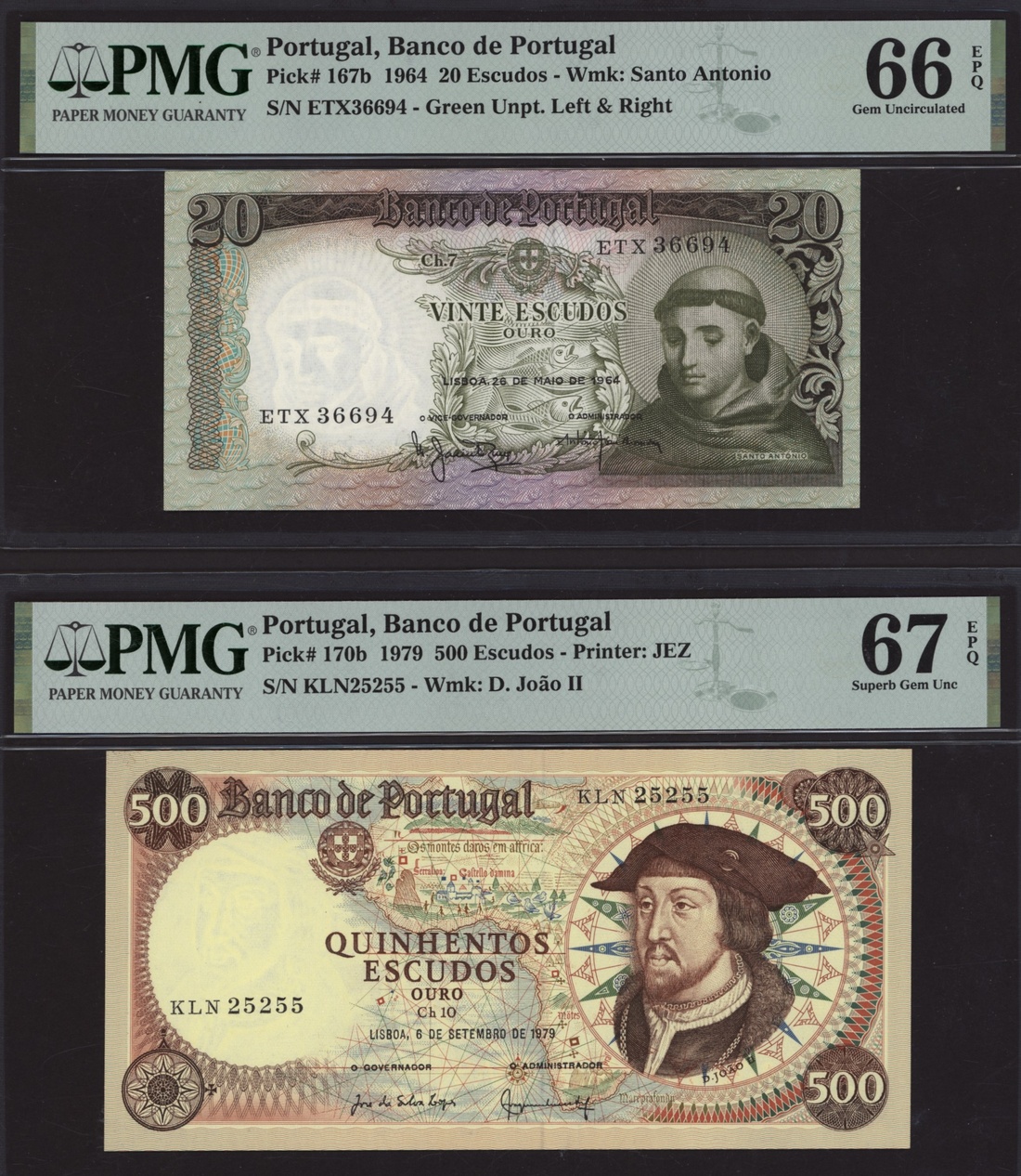 (Pick 167b, 170b, 177, 178a, 180d, unlisted), in PMG holders 67 EPQ Superb Gem Uncirculated (2), 66 EPQ Gem Uncirculated (2), 65 EPQ Gem Uncirculated (1), 64 EPQ Choice Uncirculated (1), (6 notes)