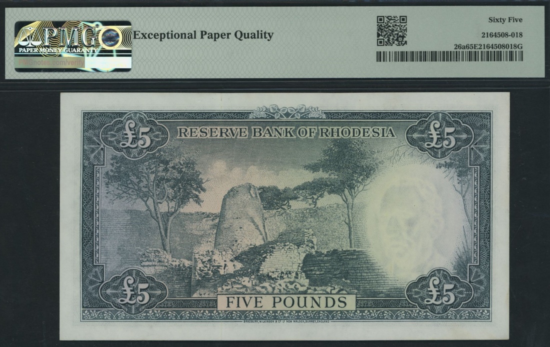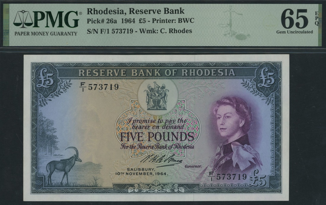 (x) Rhodesia, Reserve Bank, £5, 10th November 1964, serial number F/1 573719, (Pick 26a, BNB 103), in PMG holder 65 EPQ Gem Uncirculated