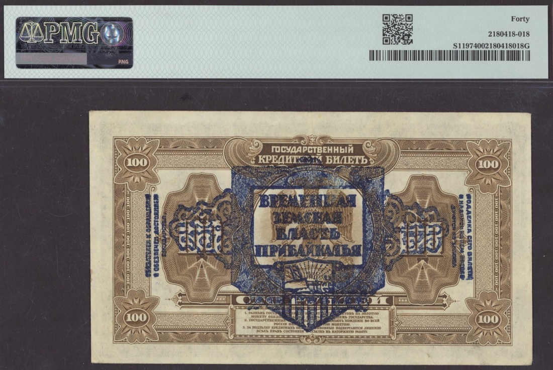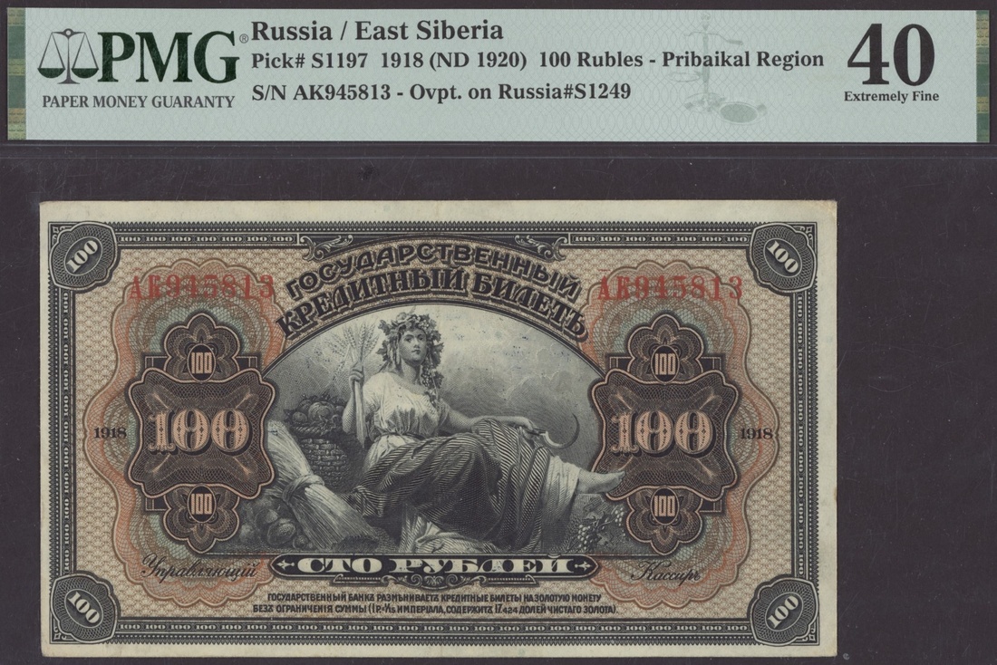 100 Rubles, 1918 (ND 1920), serial number AK945813, Pribaikal Region,