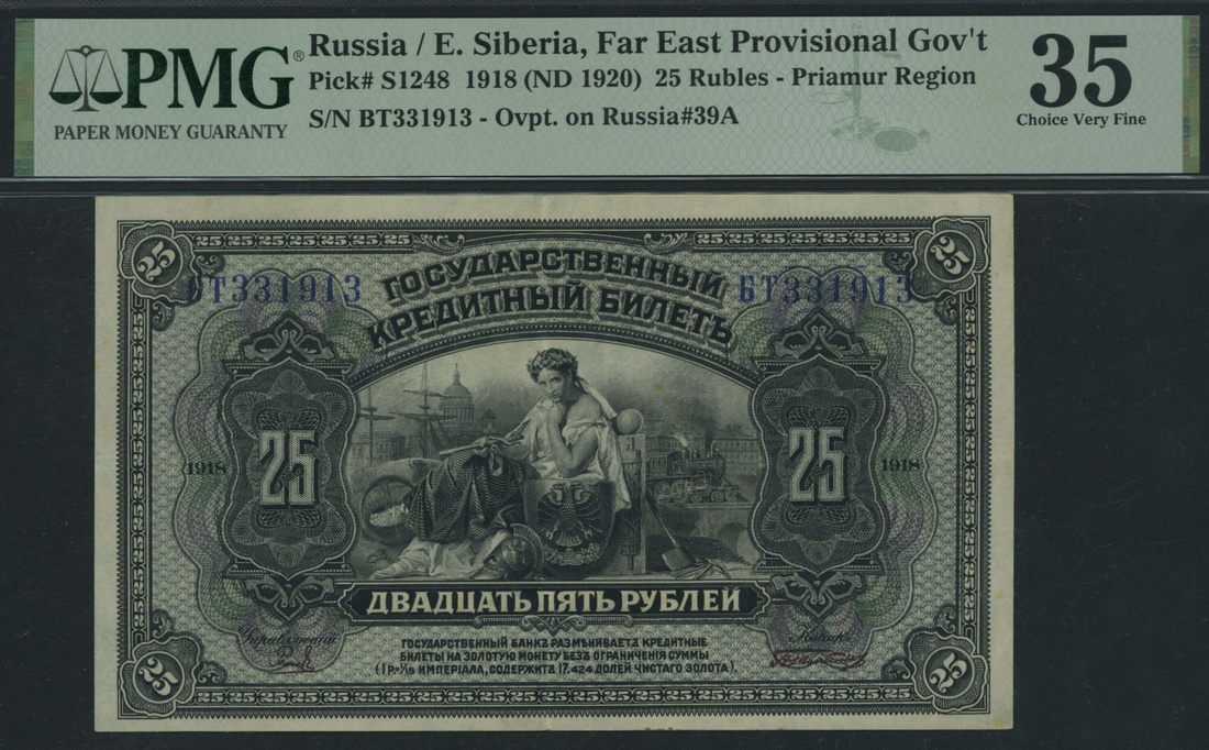 25 Rubles, 1918 (ND 1920), serial number BT331913, Priamur Region