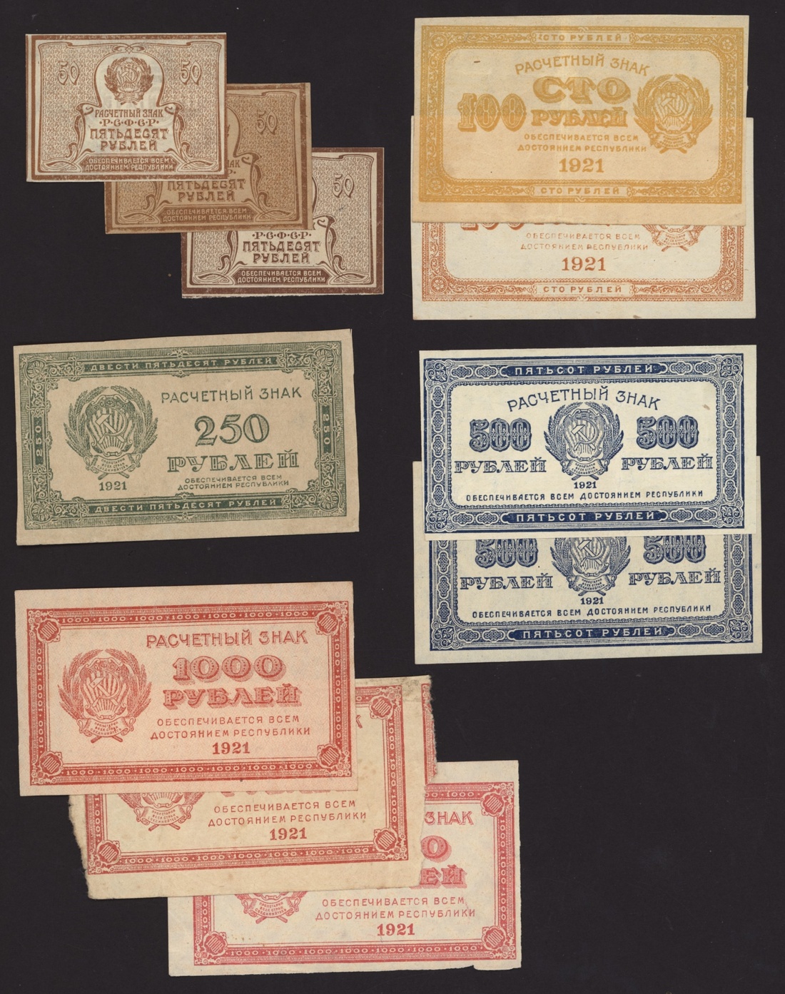 Soviet State Currency Notes, [11 notes] 50, 100, 250, 500, 1000 Rubles, 1921, (Pick 107a, 107b, 107c, 108, 109, 110a, 111a, 111b, 112a, 112b, 112d), extremely fine to about uncirculated, toning (11 notes)