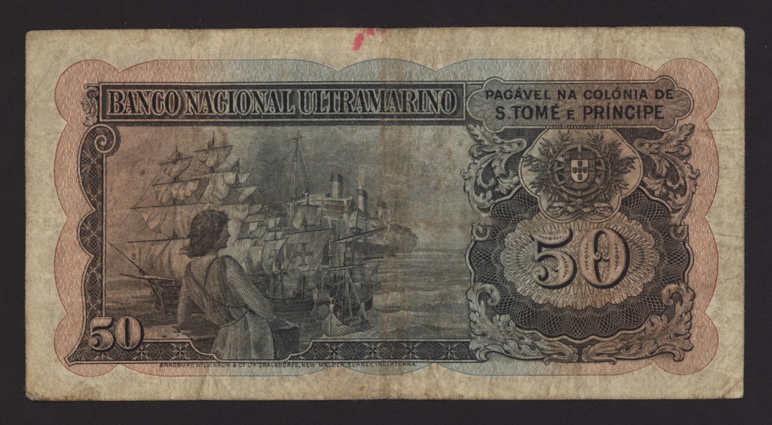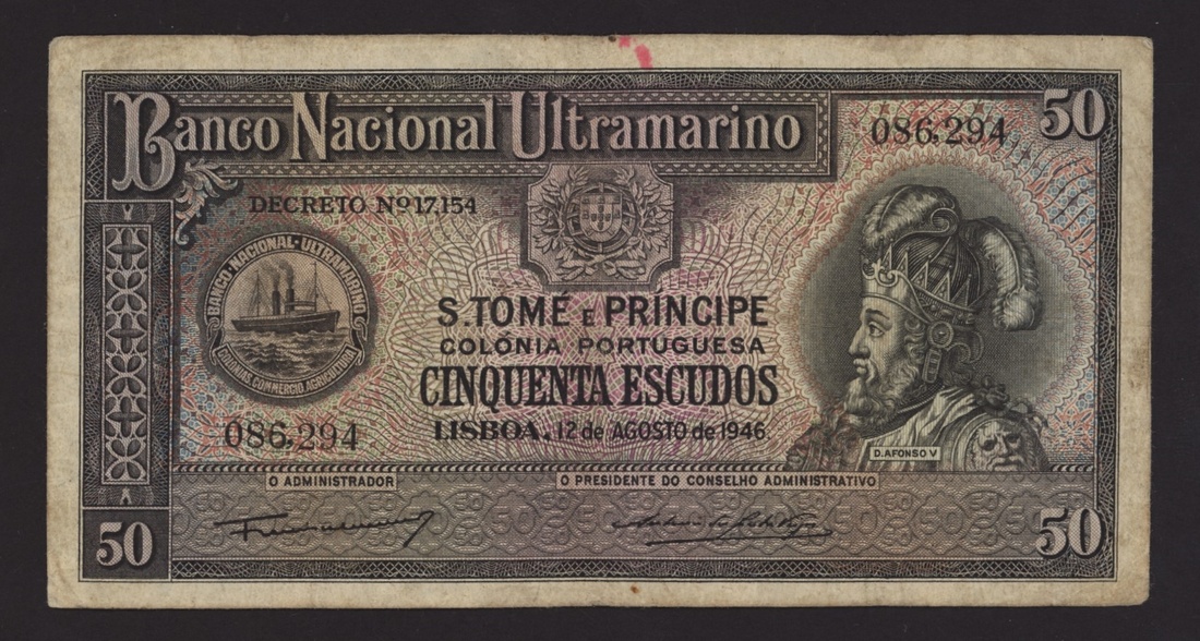 (x) Banco Nacional Ultramarino, São Tomé and Príncipe, 50 Escudos, Lisbon, 12th August 1946, serial number 086294, (Pick 45), fine, ink stains