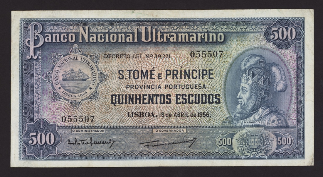 (x) Banco Nacional Ultramarino, São Tomé and Príncipe, 500 Escudos, Lisbon, 18th April 1956, serial number 055507, (Pick 39a), fine