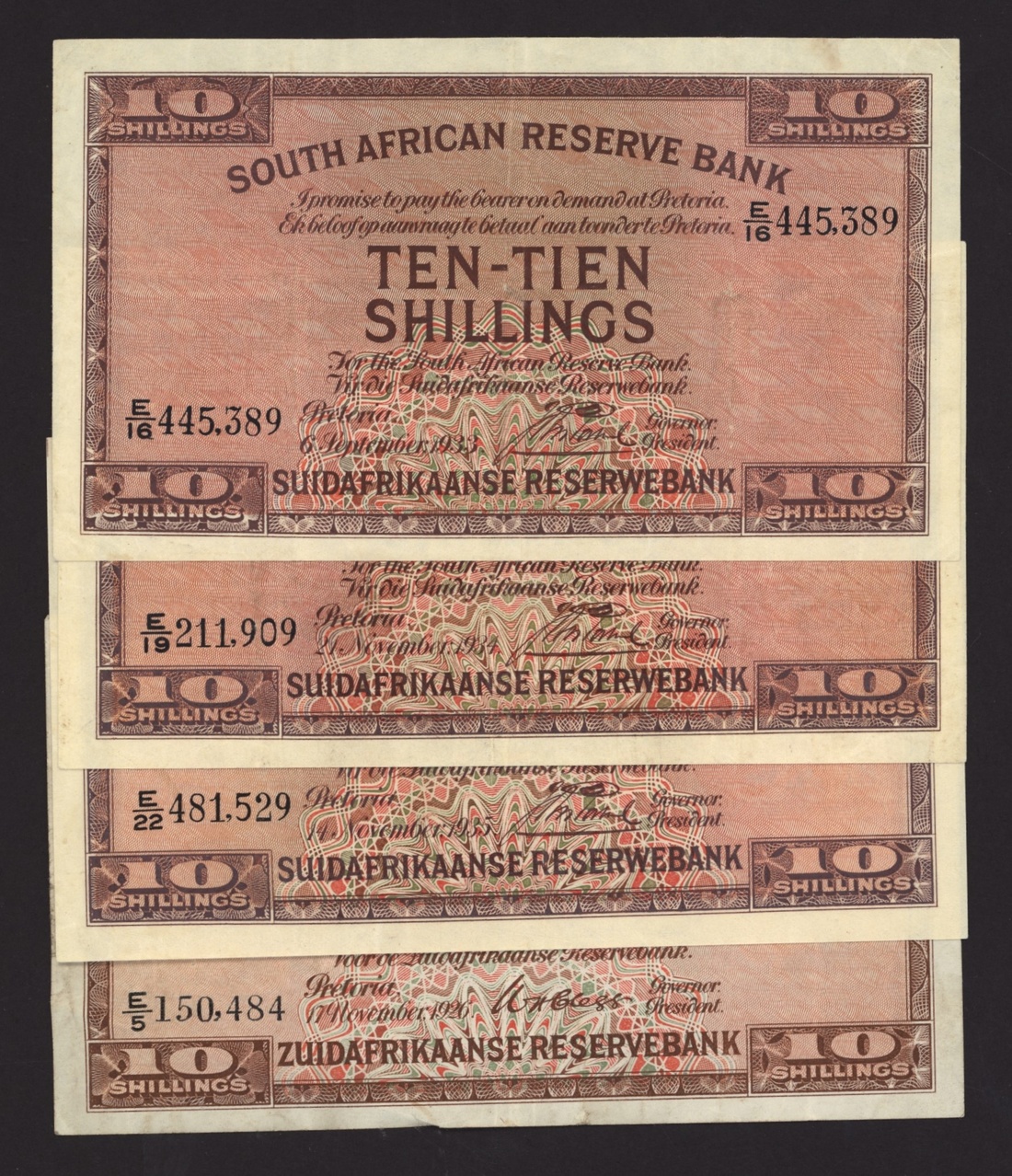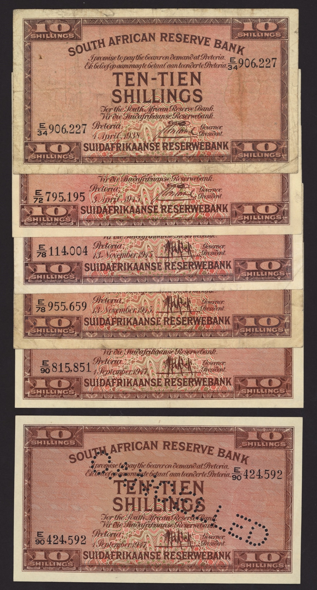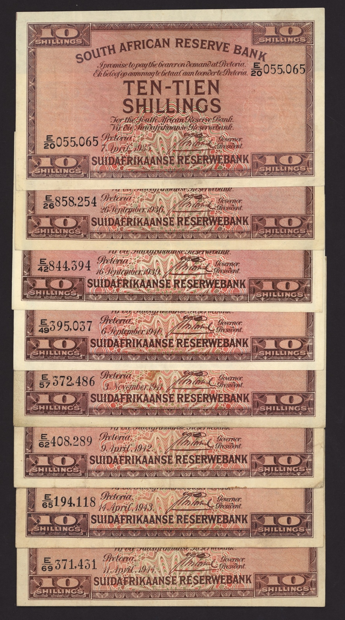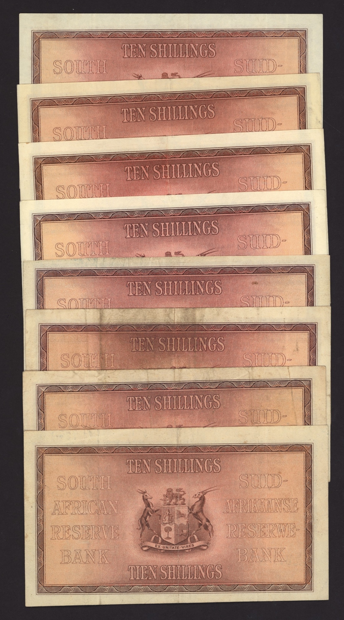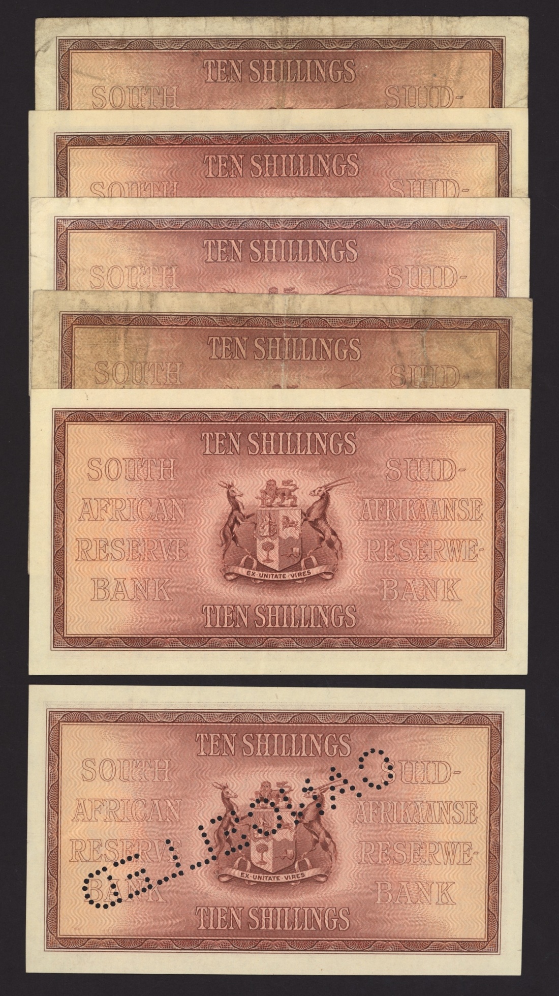 South African Reserve Bank, [18 notes] 10 Shillings, ND (1926-1947), (Pick 82), solid fine to uncirculated, one hole punch cancelled (18 notes)