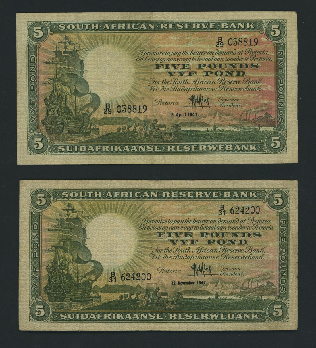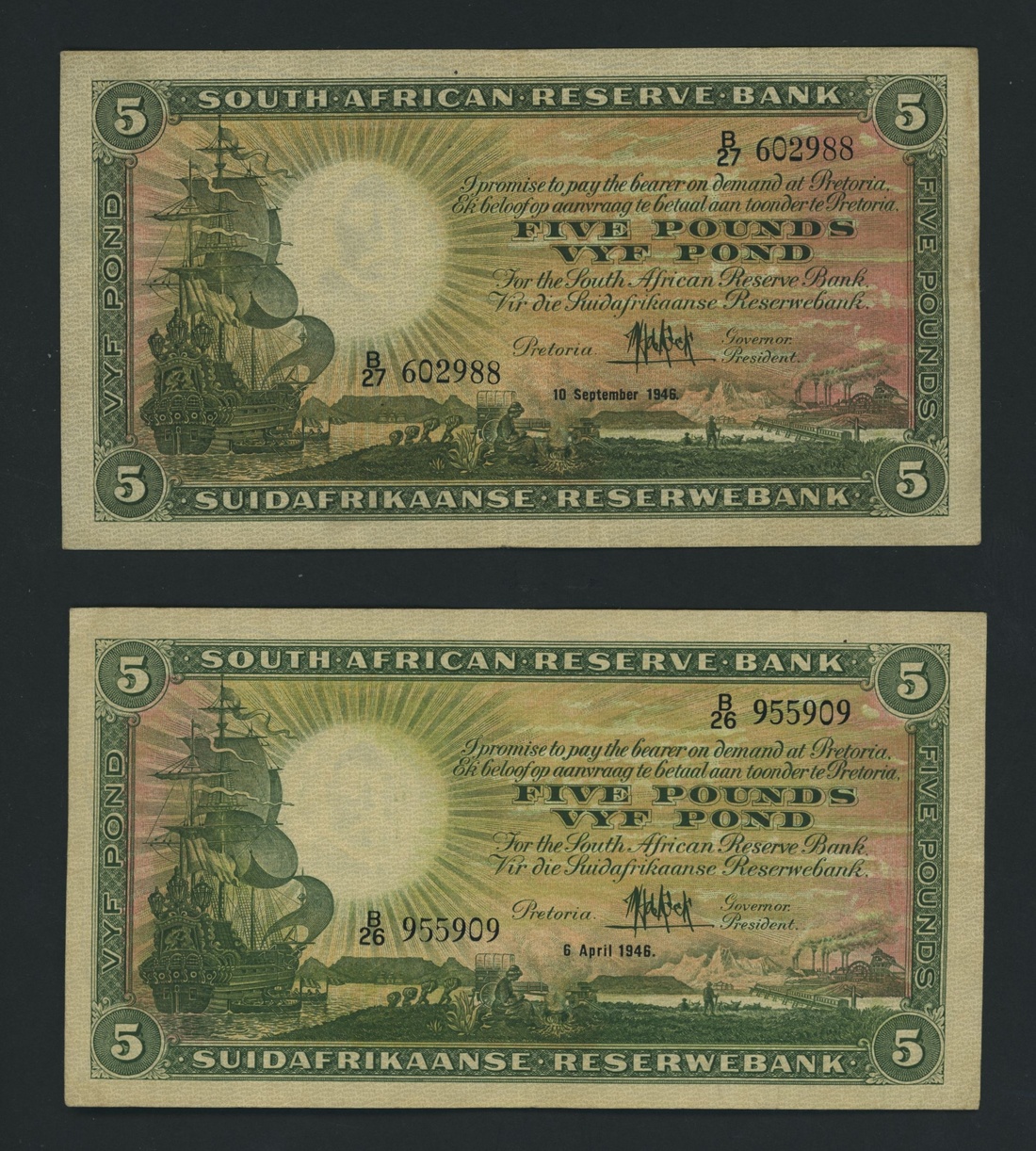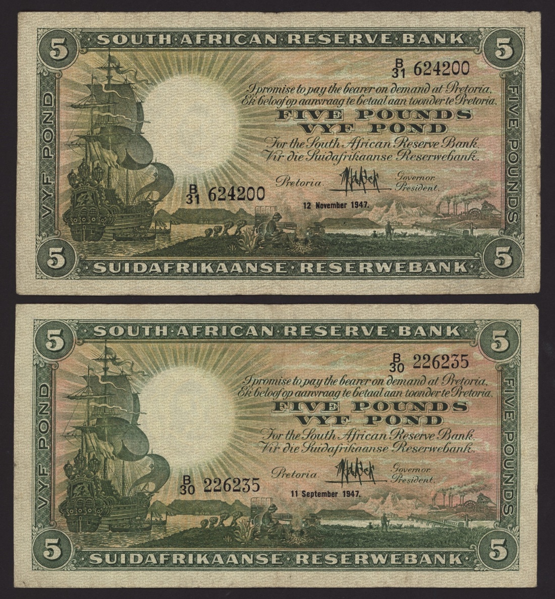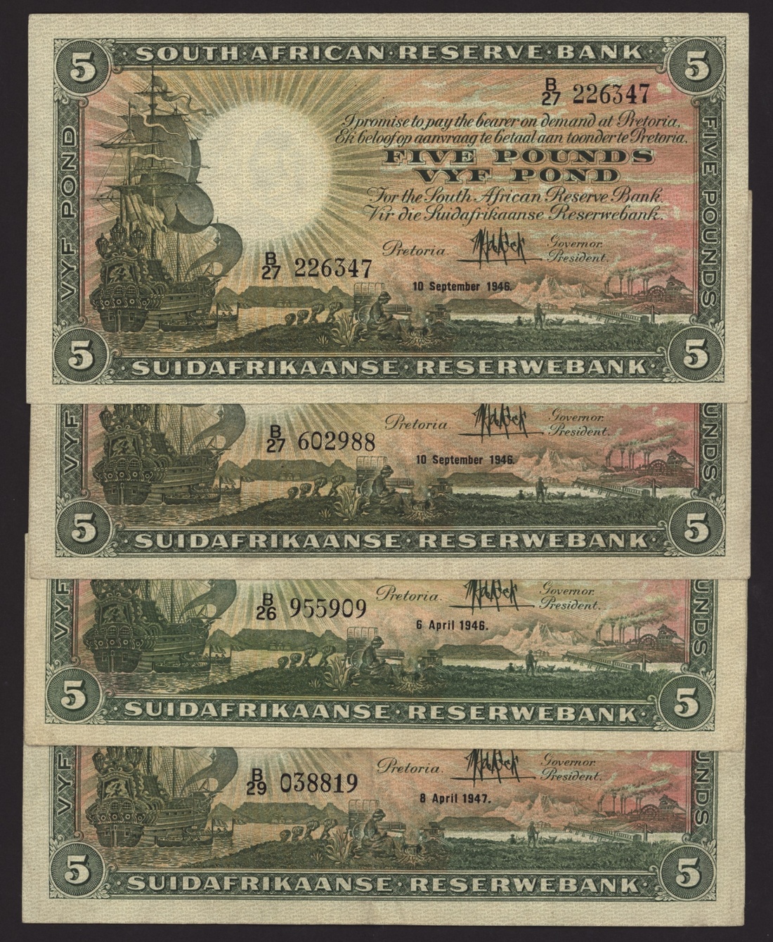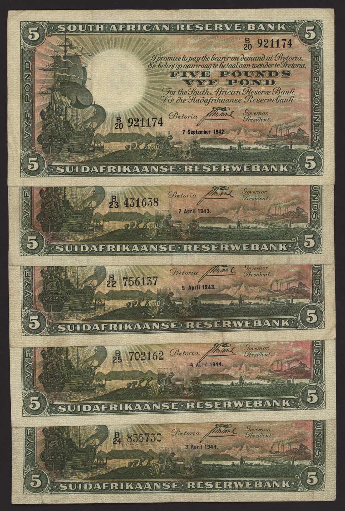 South African Reserve Bank, [11 notes] 5 Rand, ND (1942-1947), (Pick 86), fine to extremely fine (11 notes)