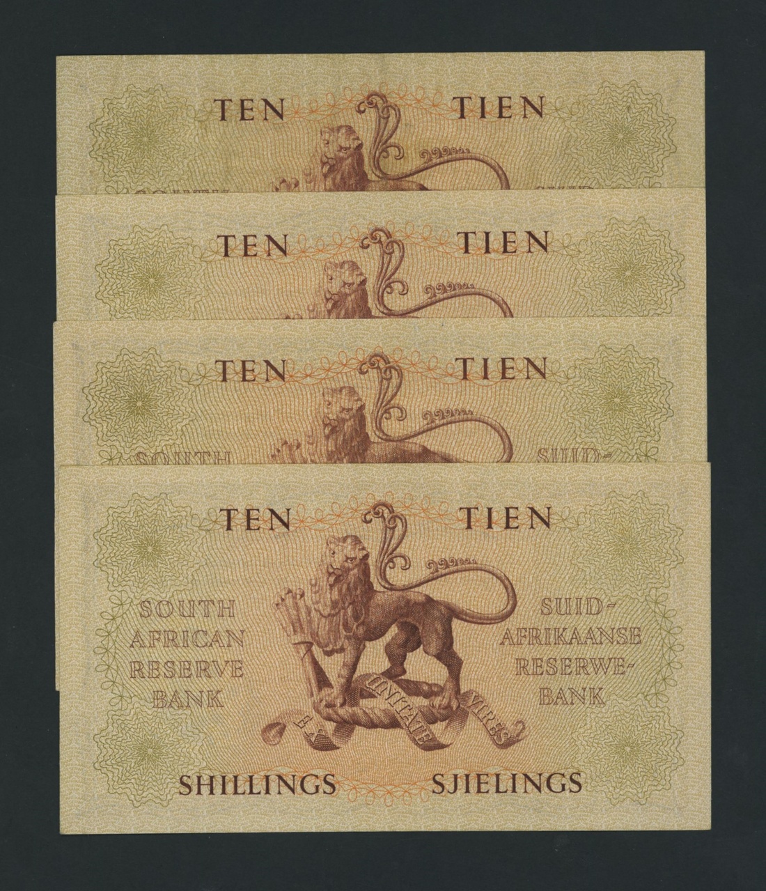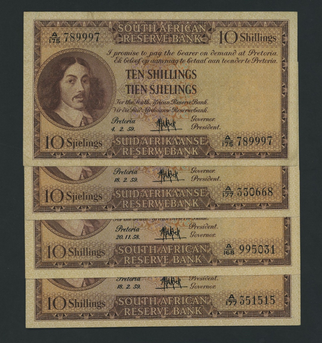 South African Reserve Bank, [4 notes] 10 Shillings, Pretoria, 1958-9,