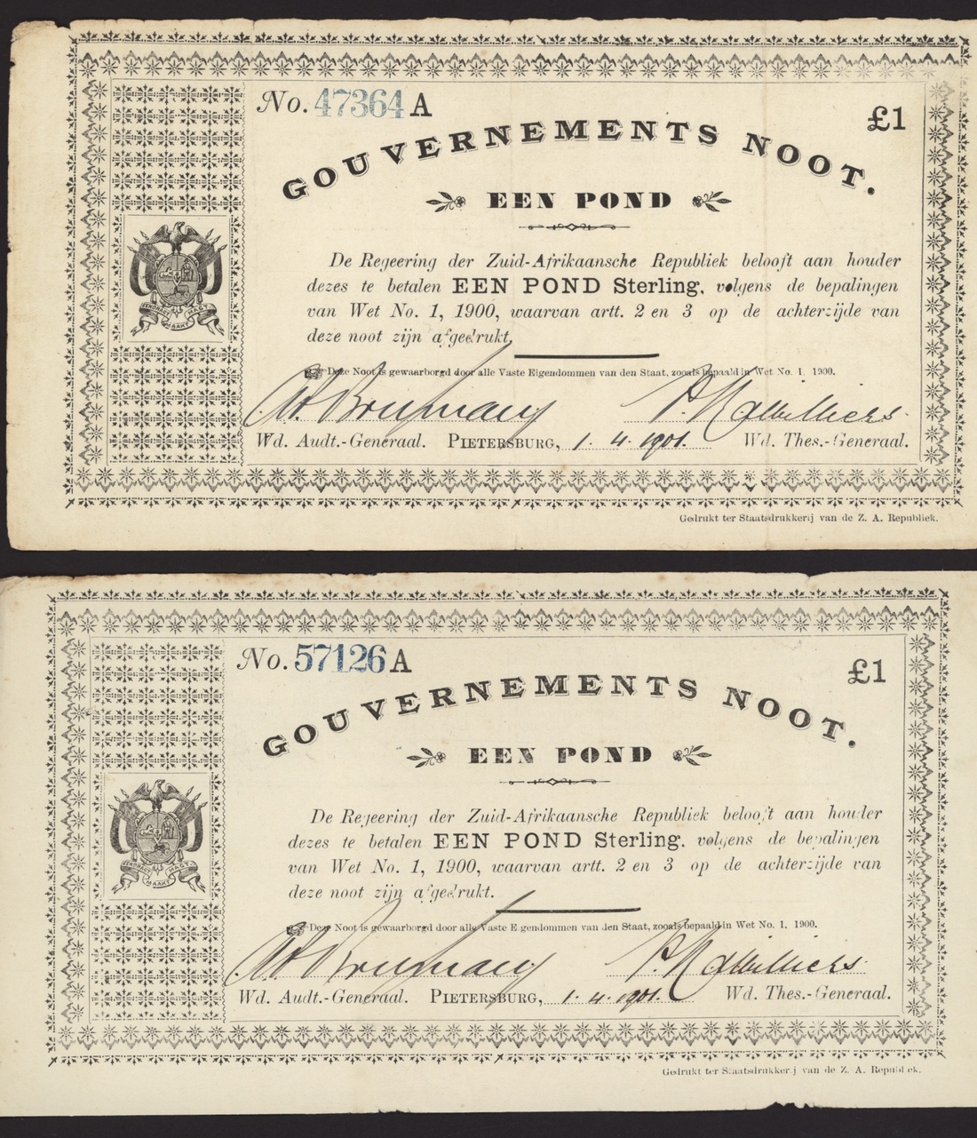 (2) 1901 £1 Gouvernement Noots