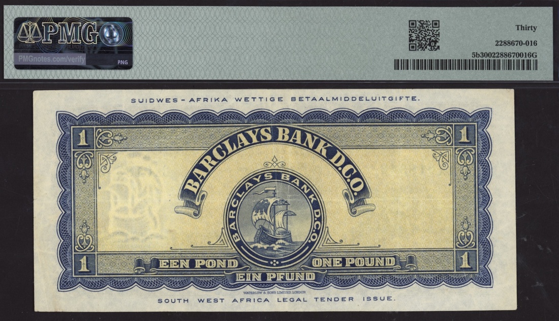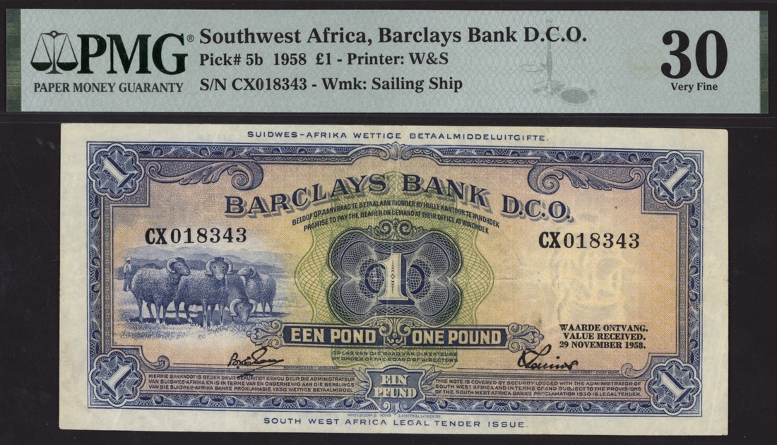 (x) Barclays Bank D.C.O., South Africa, £1, 1958, serial number CX018343, (Pick 5b), in PMG holder 30 Very Fine