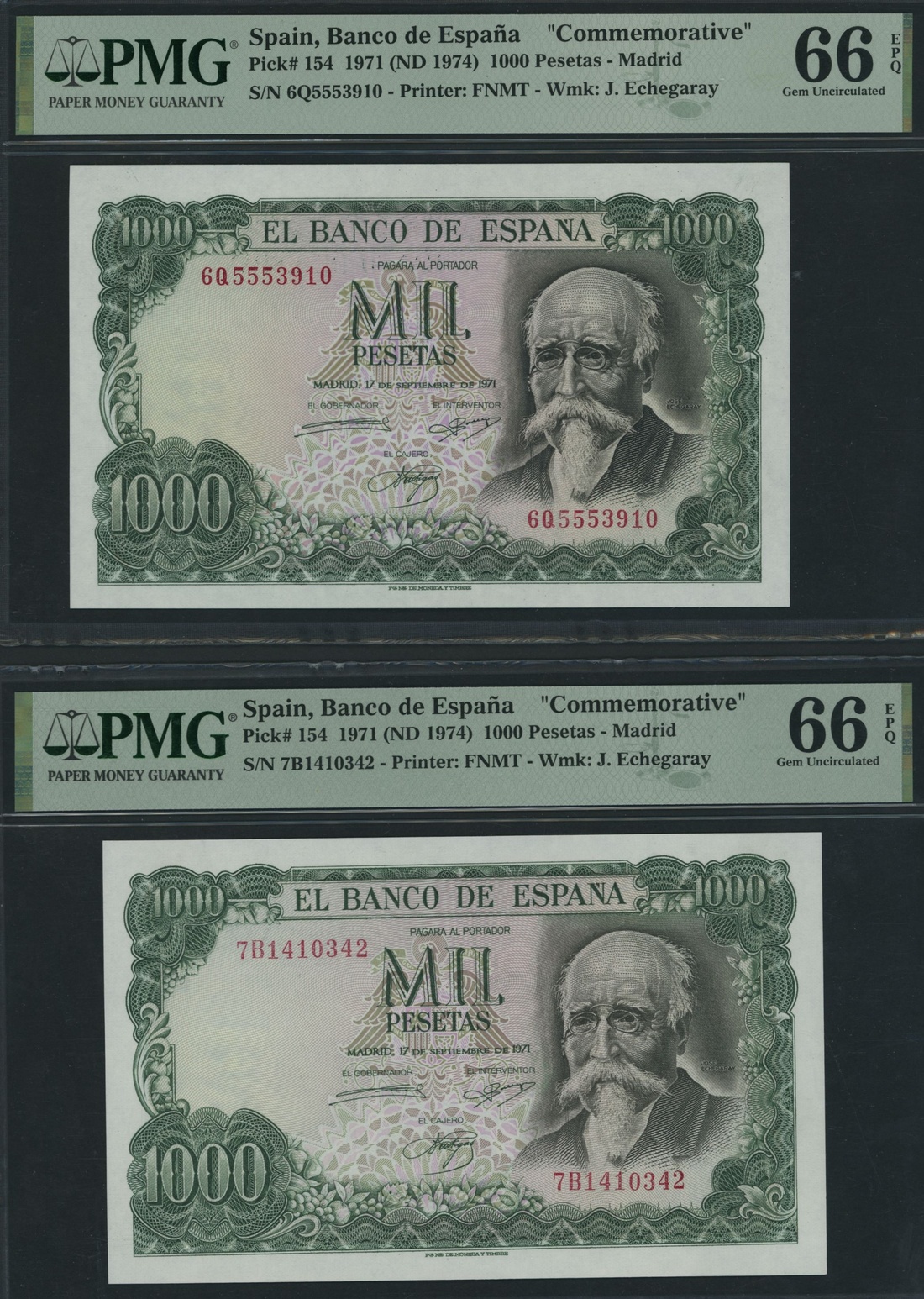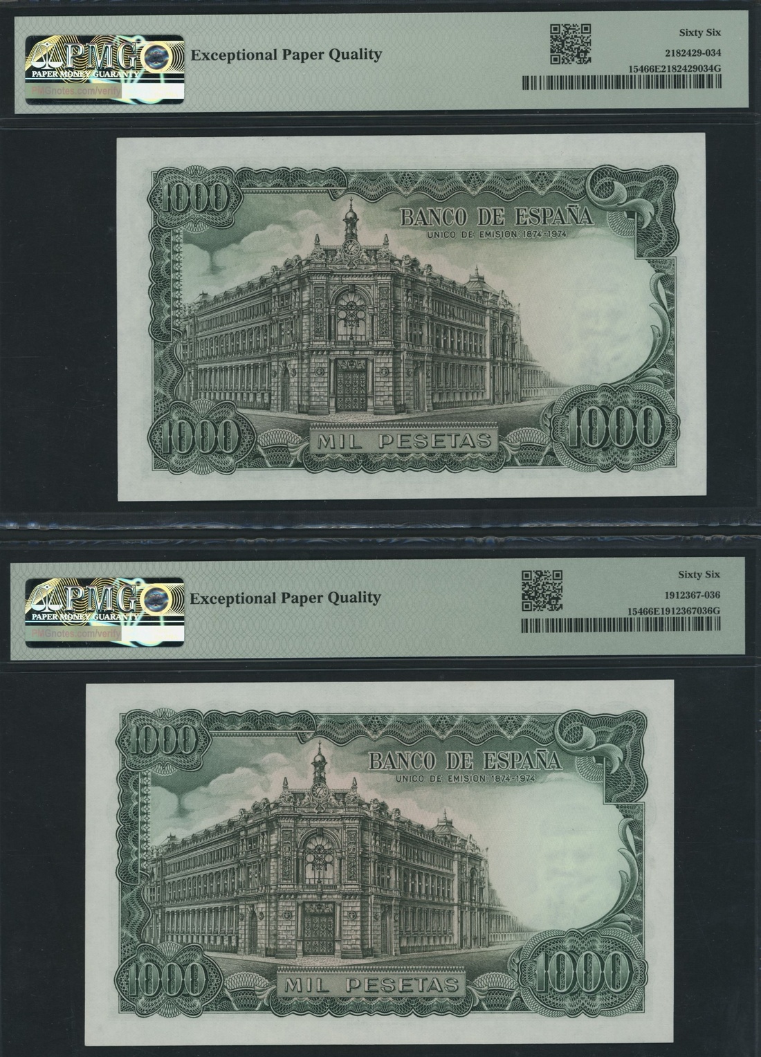 pair of Commemorative 1000 Pesetas, 1971 (ND 1974) serial number 6Q5553910 and 7B1410342,