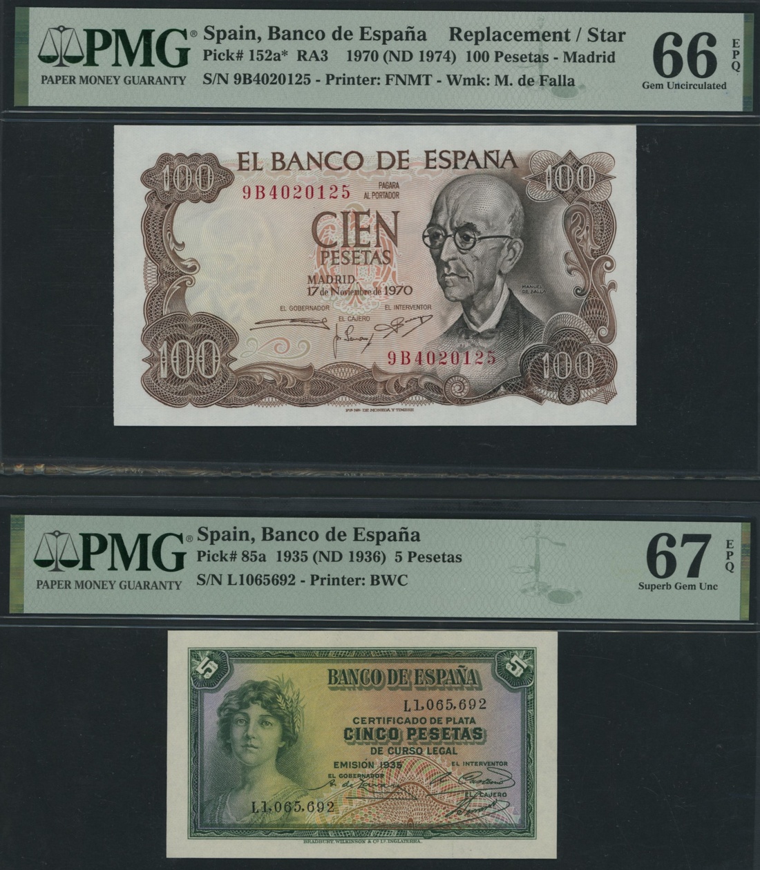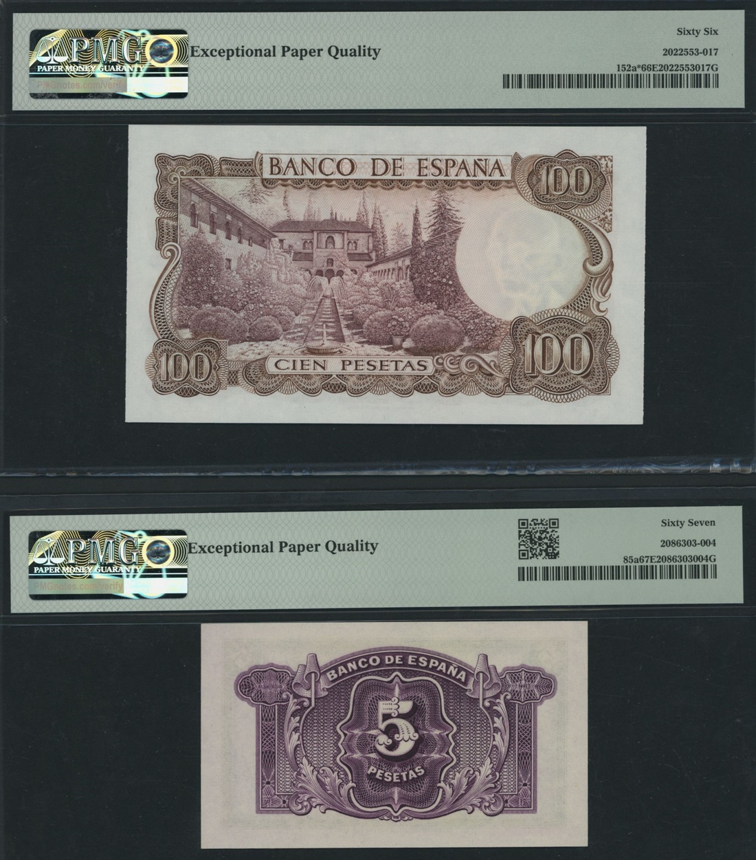 (Pick 85a, 95, 152a*, 154, BNB 528a, 618, 620, 703), in PMG holder 67 EPQ Superb Gem Uncirculated (1), 66 EPQ Gem Uncirculated (4), (5 notes)