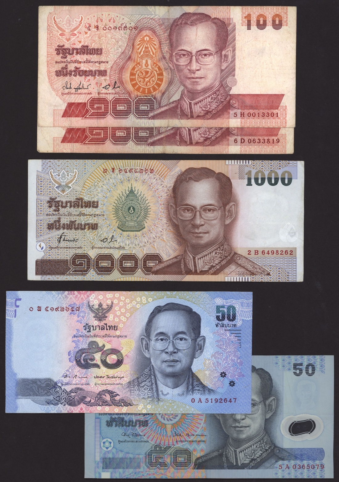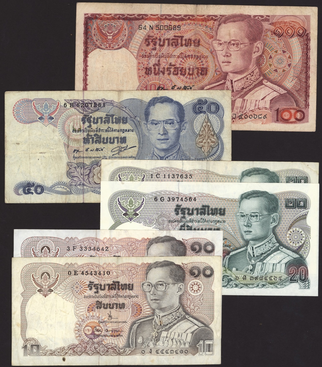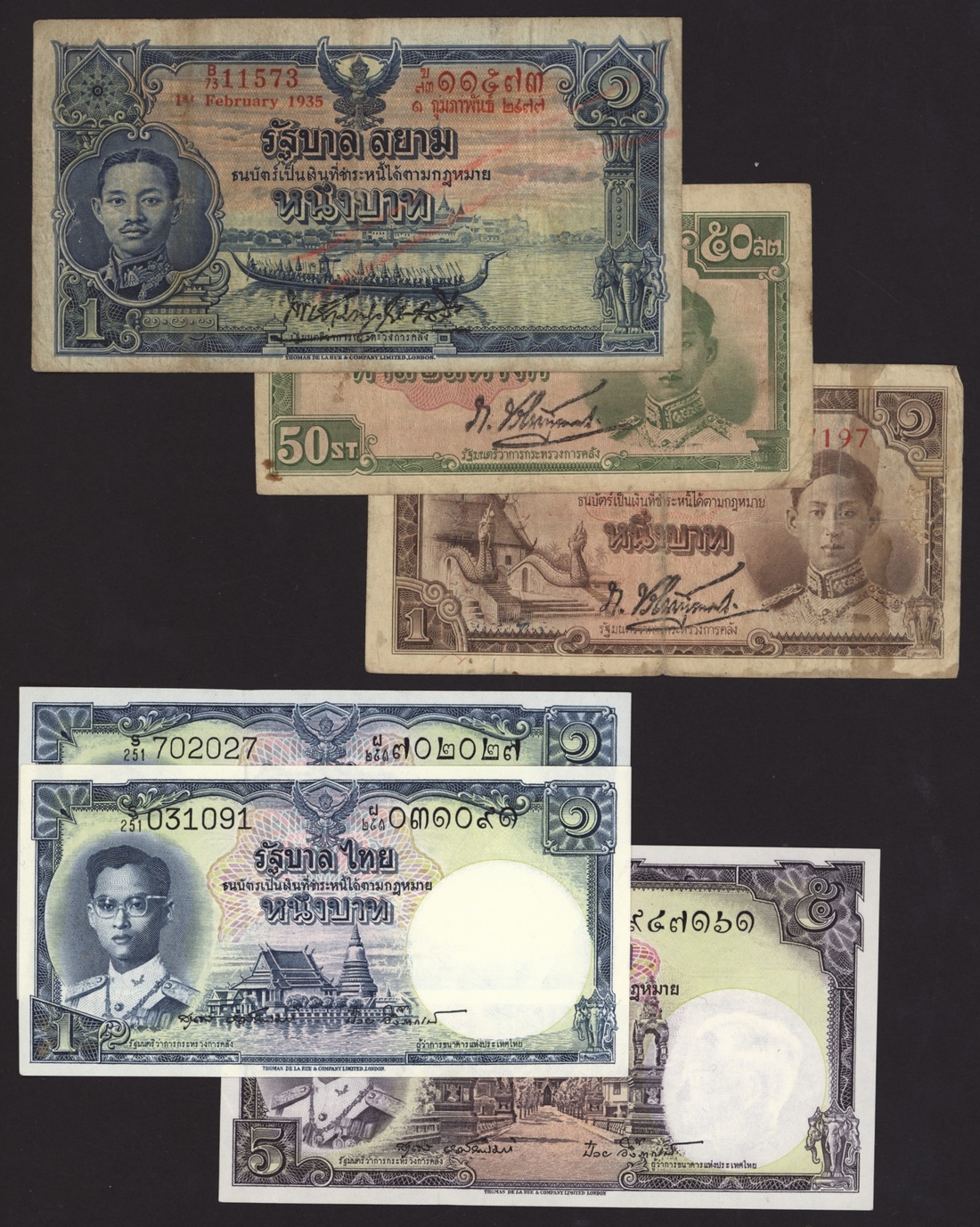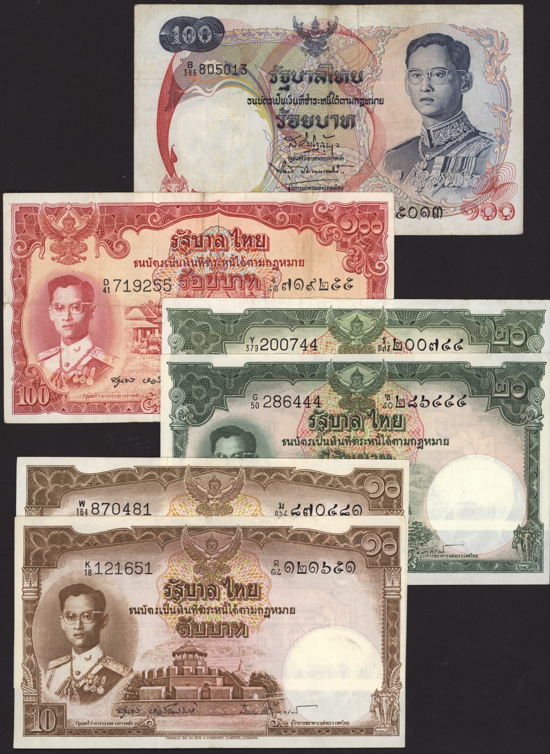 Group of Thai banknotes, [23 notes] 1935-2015, (Pick 22, 43a, 44c, 74d, 75d, 76d, 77d, 78d, 79a, 87, 88, 89, 90a, 97, 102a, 108, 119), fine to about uncirculated (23 notes)