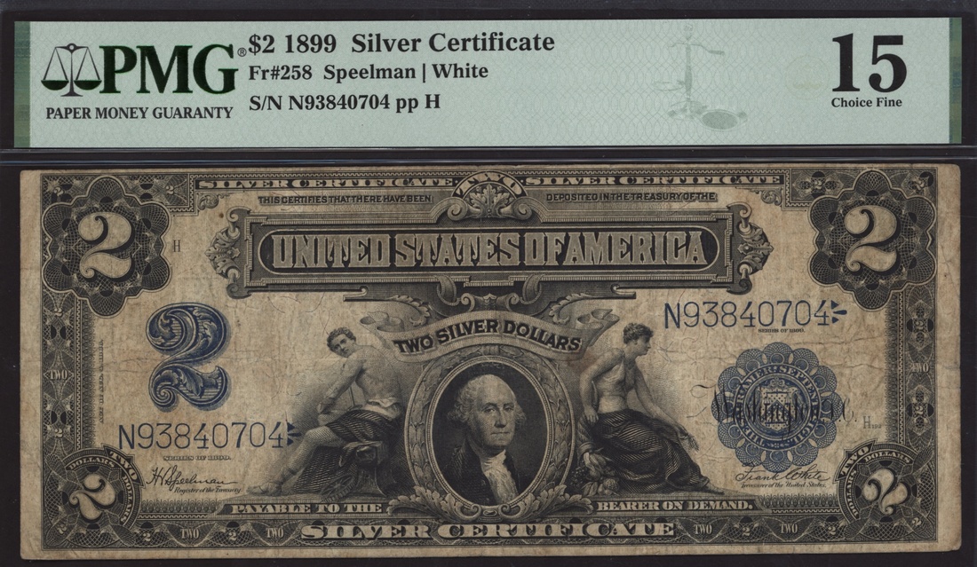 (x) Silver Certificate, United States, $2, 1899, serial number N93840704, (Fr 258), in PMG holder 15 Choice Fine