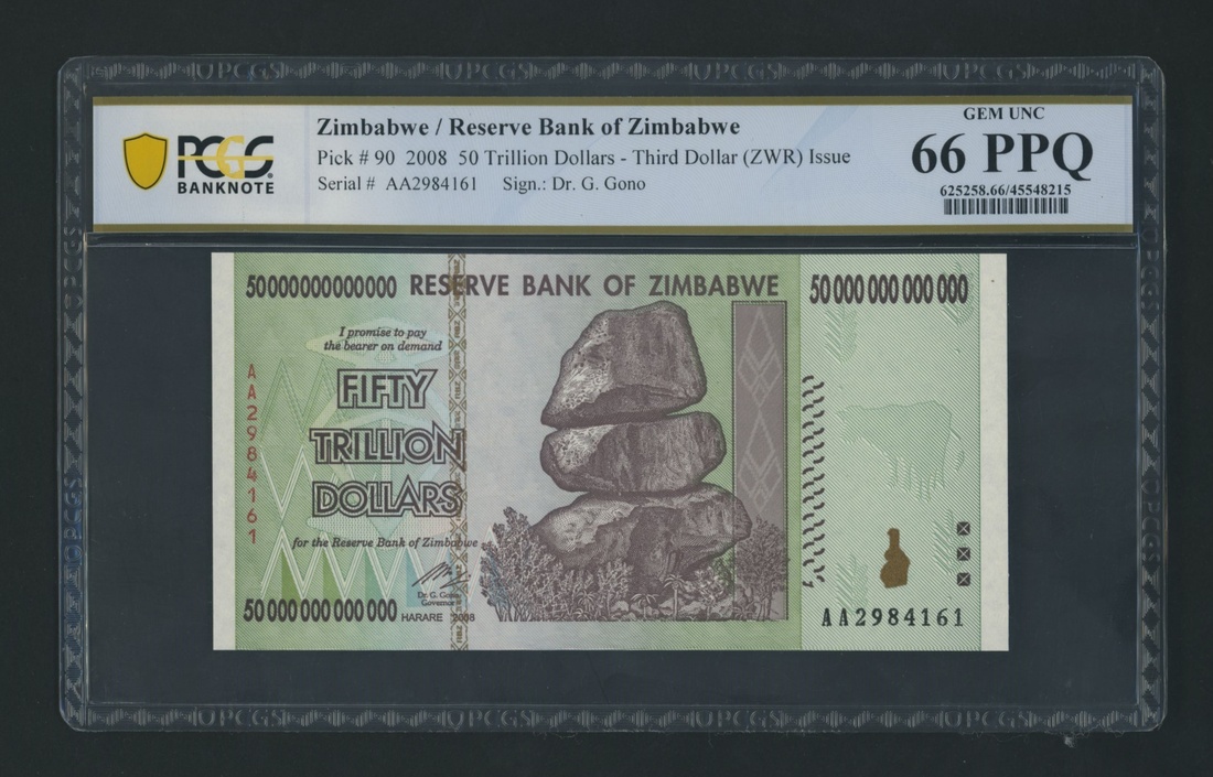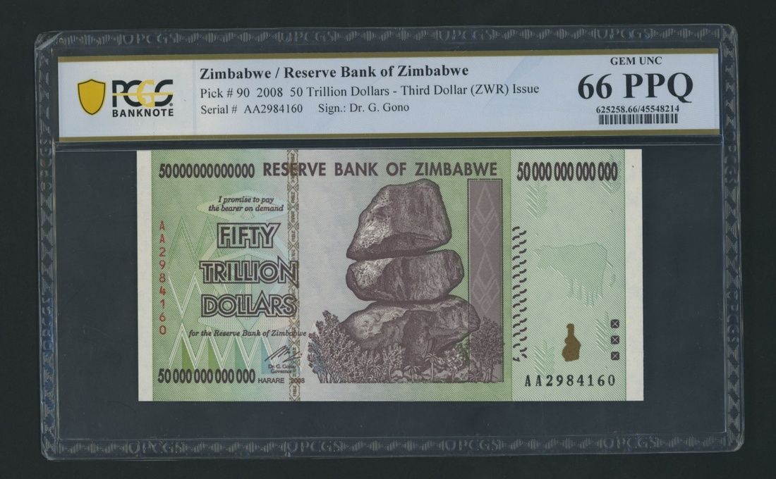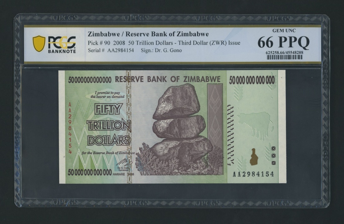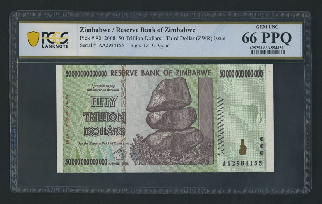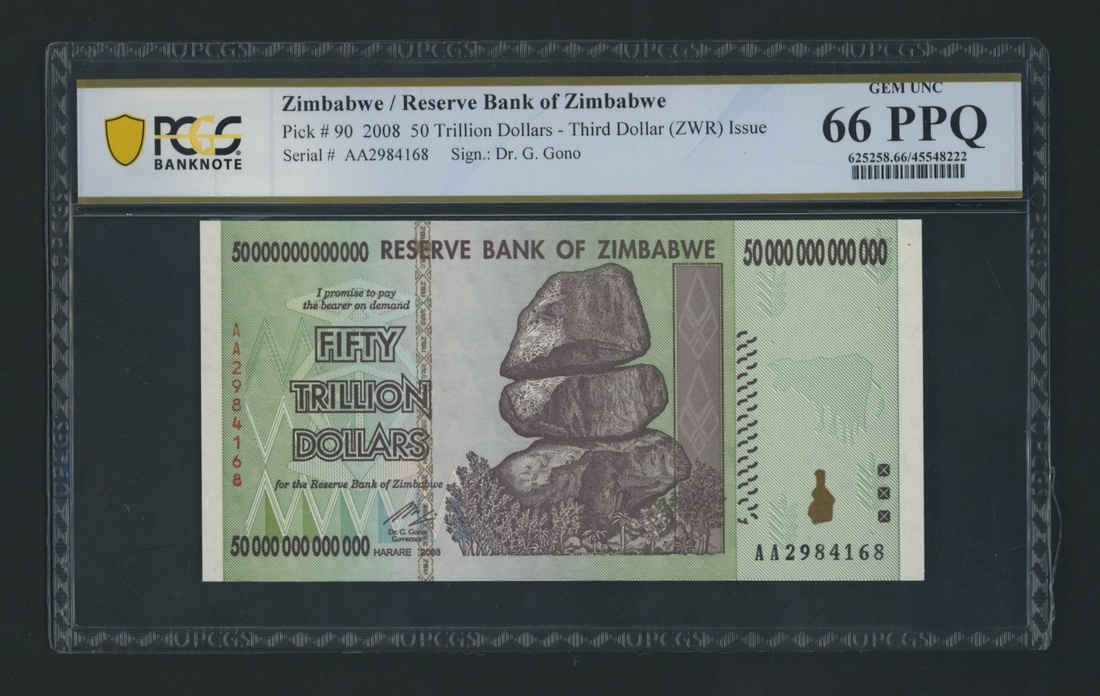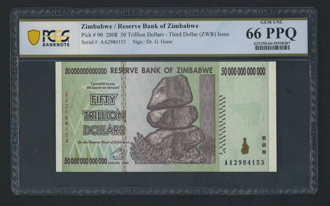 (x) Reserve Bank of Zimbabwe, [13 notes] 50,000,000,000,000, (2008), Prefix AA, mostly consecutive, (Pick 90, BNB 181), in PCGS holders 66 PPQ Gem Uncirculated (13 notes)