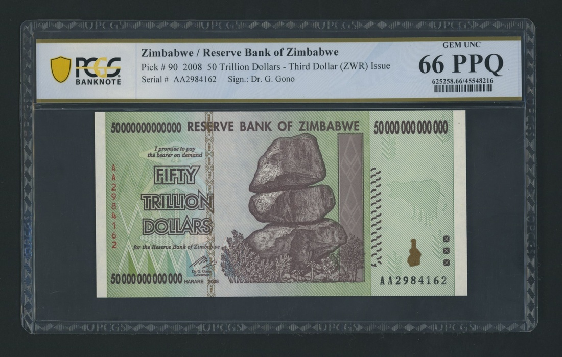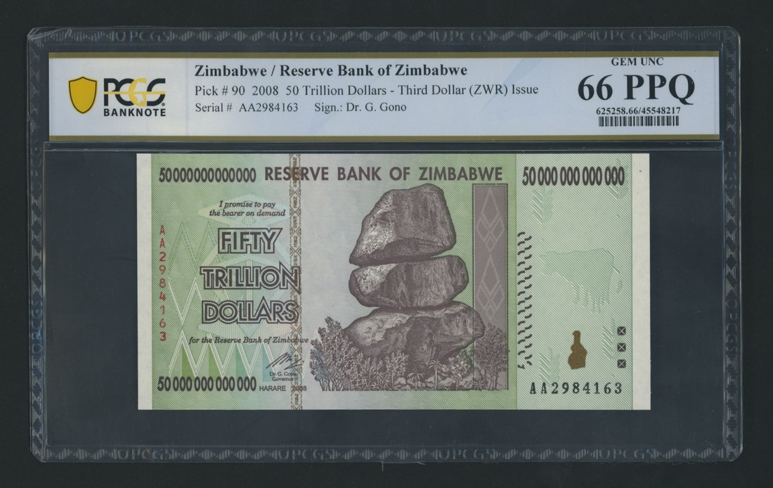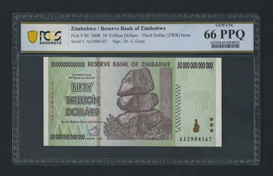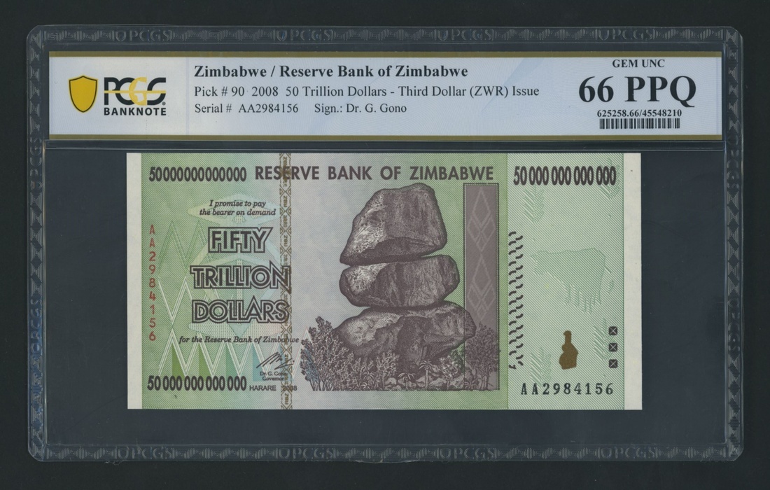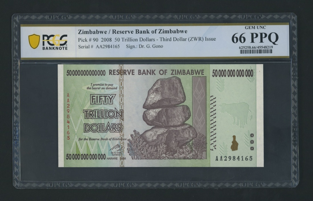 (x) Reserve Bank of Zimbabwe, [13 notes] 50,000,000,000,000, (2008), Prefix AA, mostly consecutive, (Pick 90, BNB 181), in PCGS holders 66 PPQ Gem Uncirculated (13 notes)