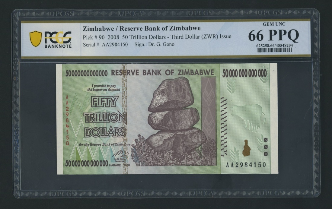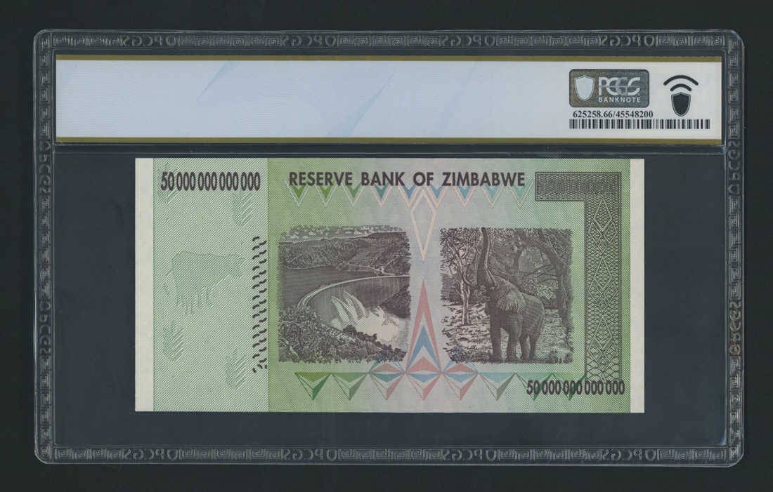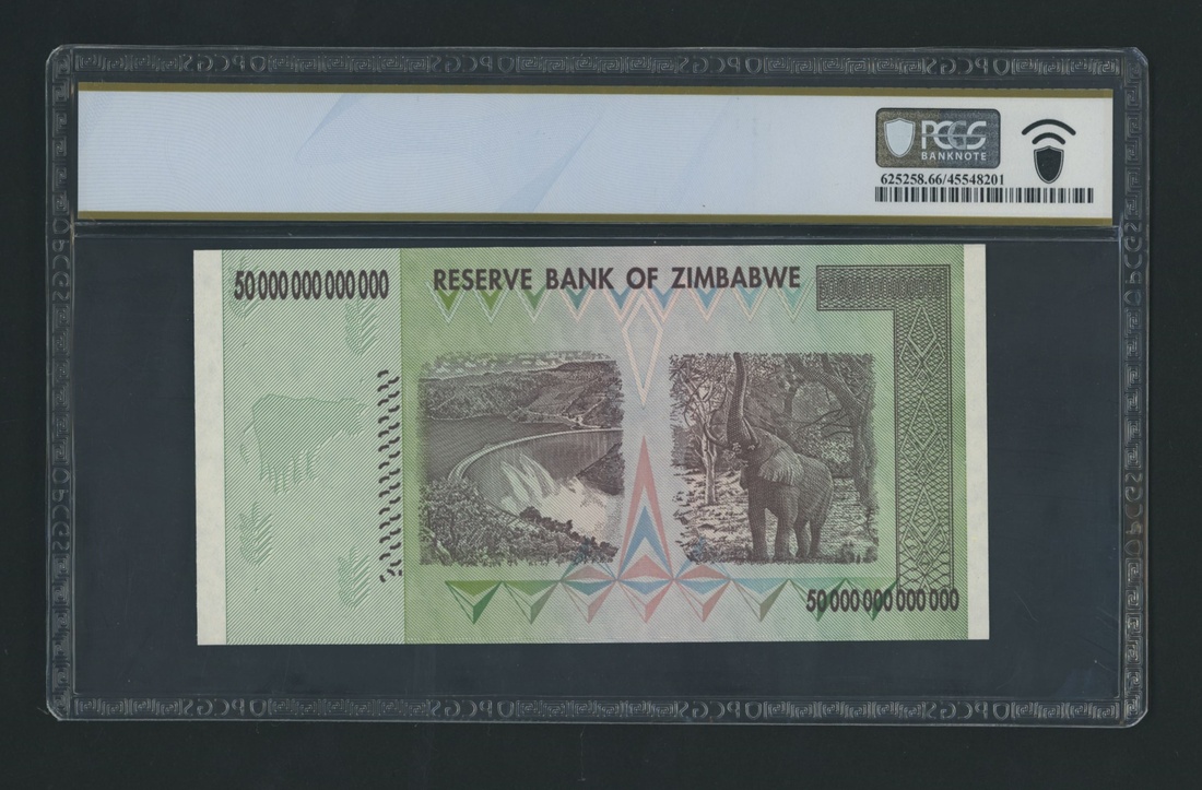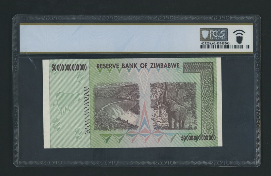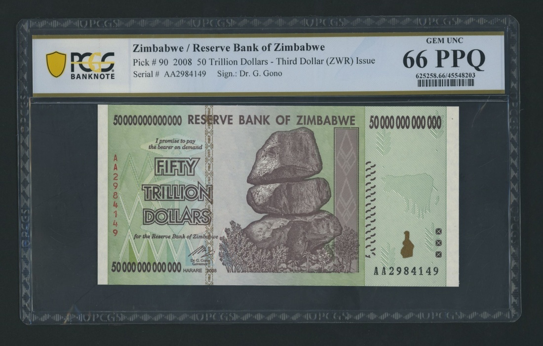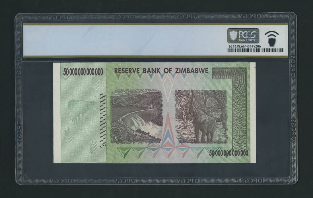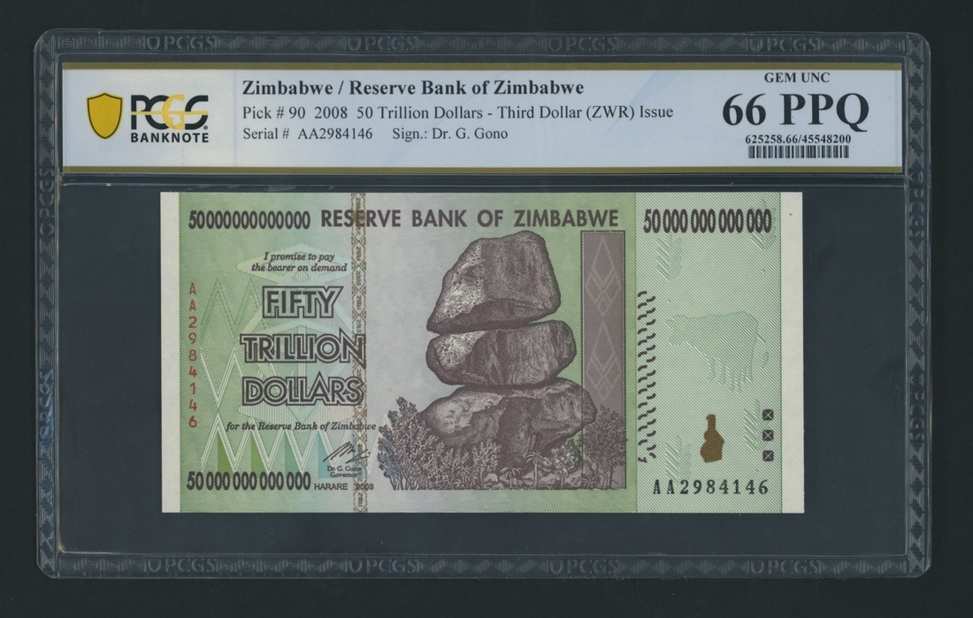 (x) Reserve Bank of Zimbabwe, [10 notes] 50,000,000,000,000, (2008), Prefix AA, mostly consecutive, (Pick 90, BNB 181), in PCGS holders 66 PPQ Gem Uncirculated (10 notes)