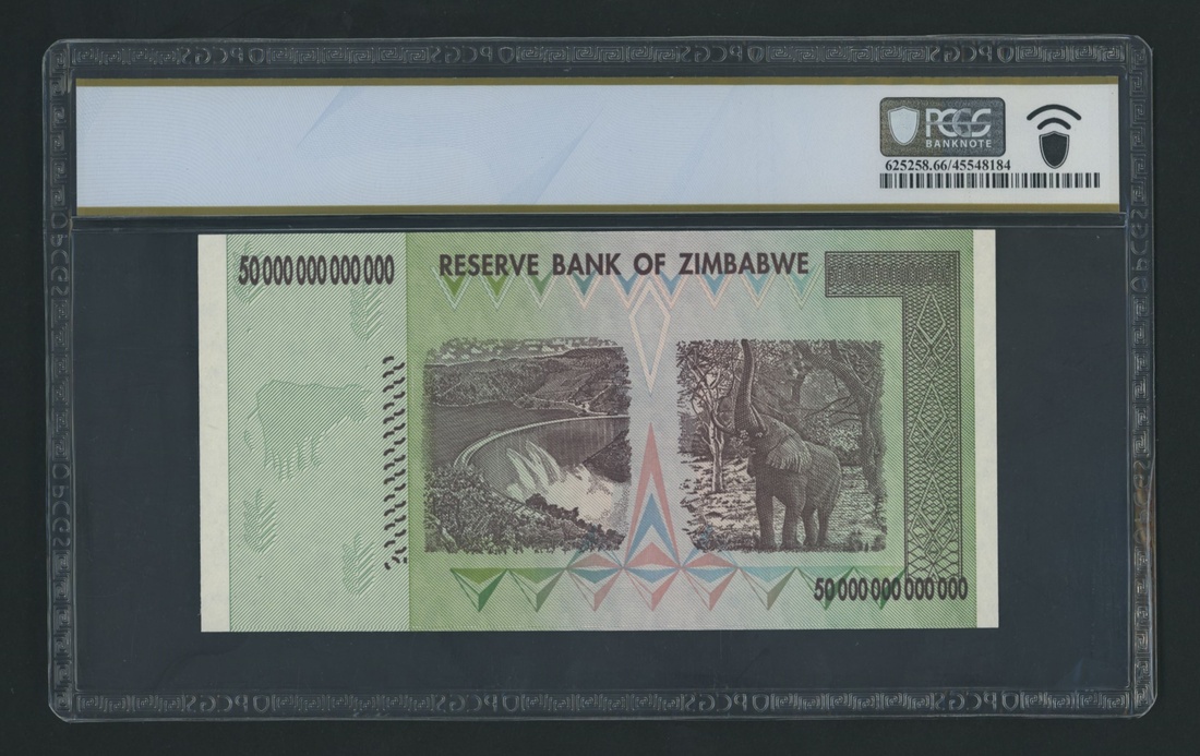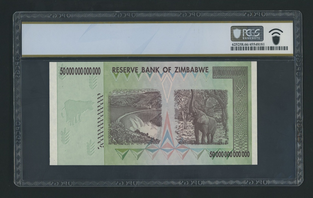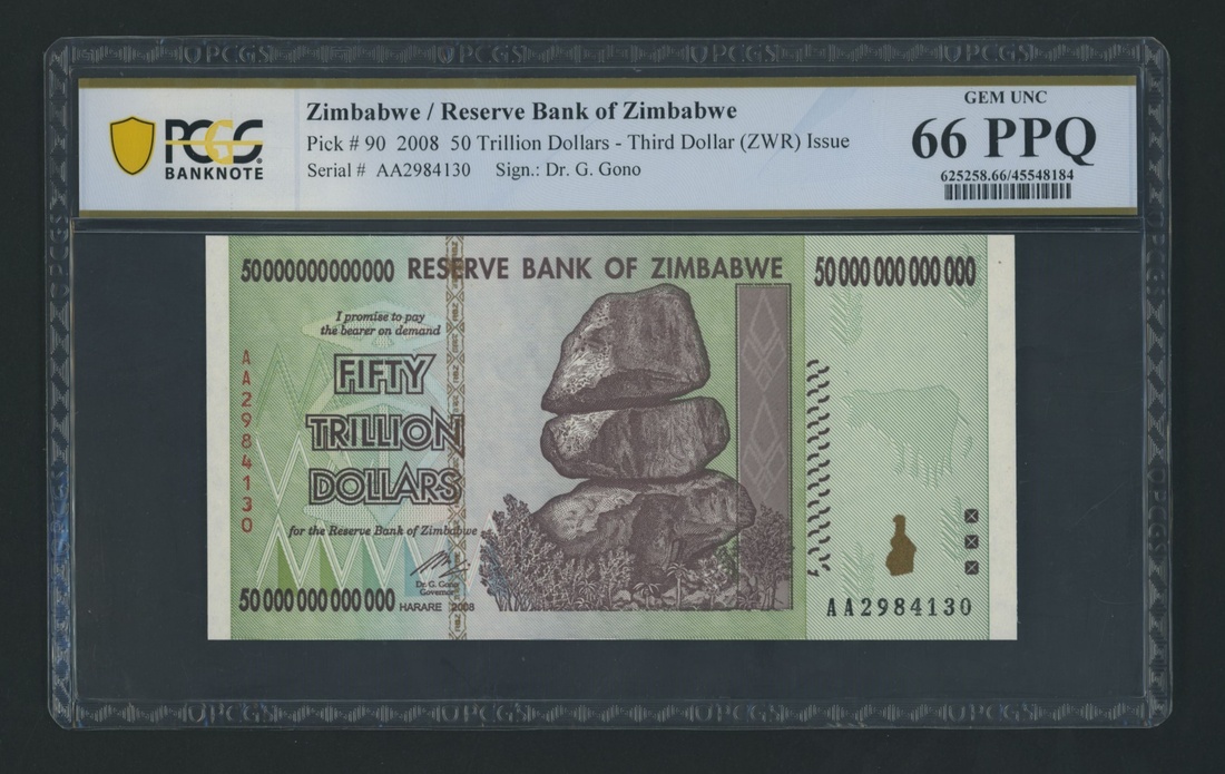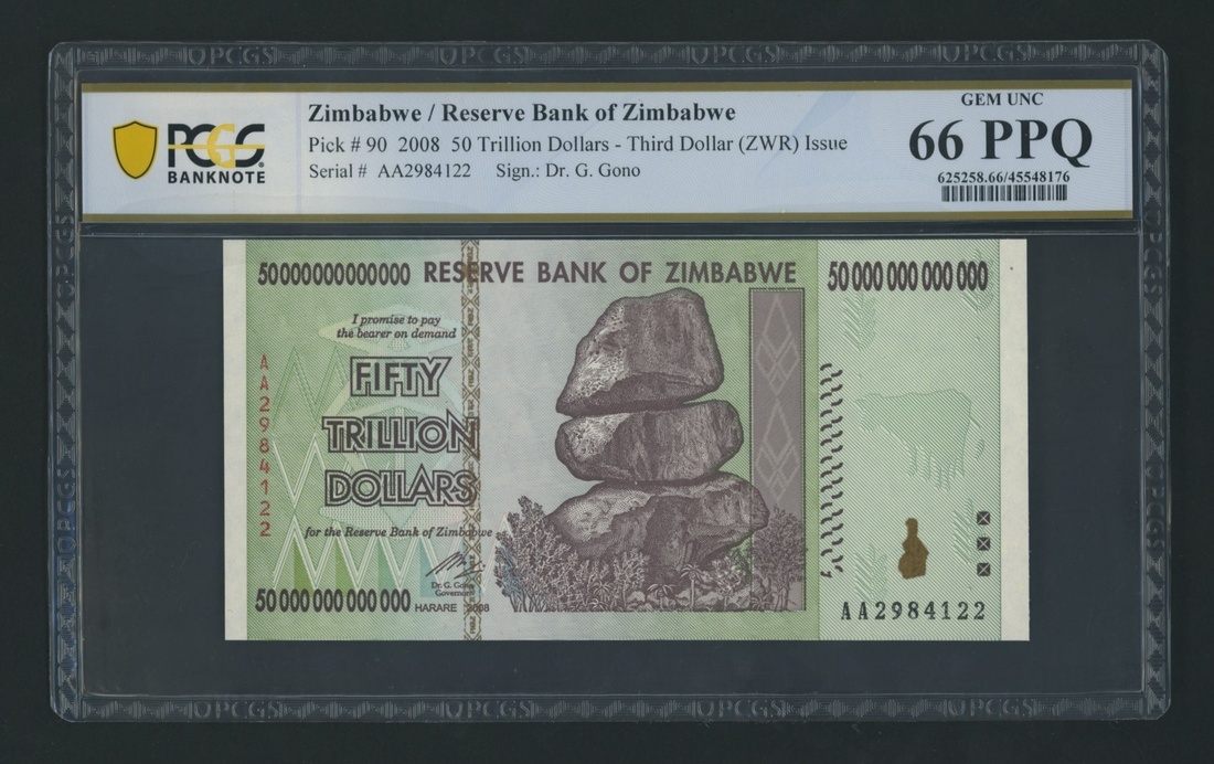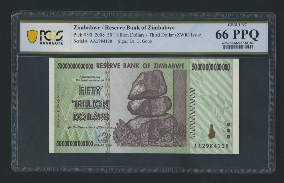 (x) Reserve Bank of Zimbabwe, [10 notes] 50,000,000,000,000, (2008), Prefix AA, mostly consecutive, (Pick 90, BNB 181), in PCGS holders 66 PPQ Gem Uncirculated (10 notes)