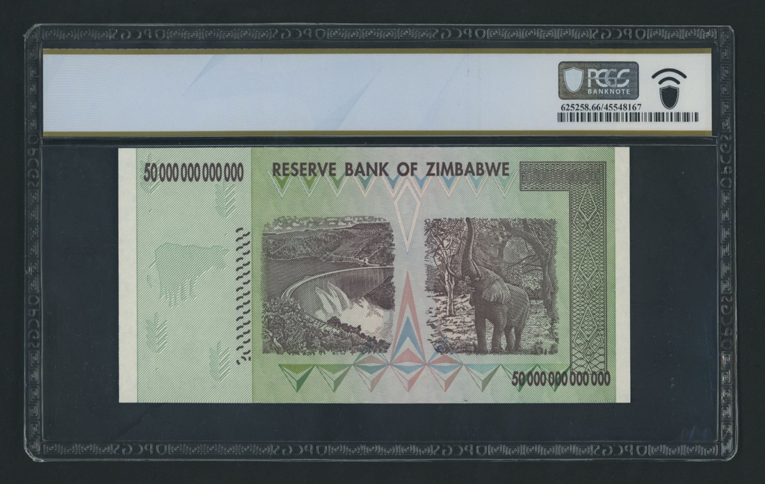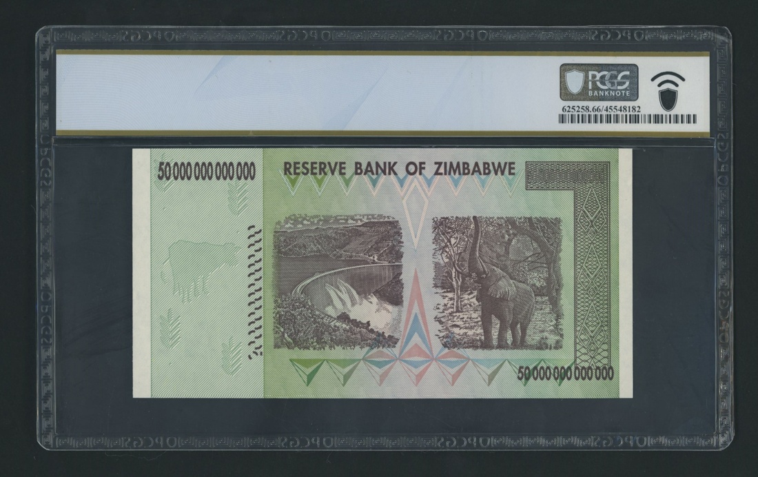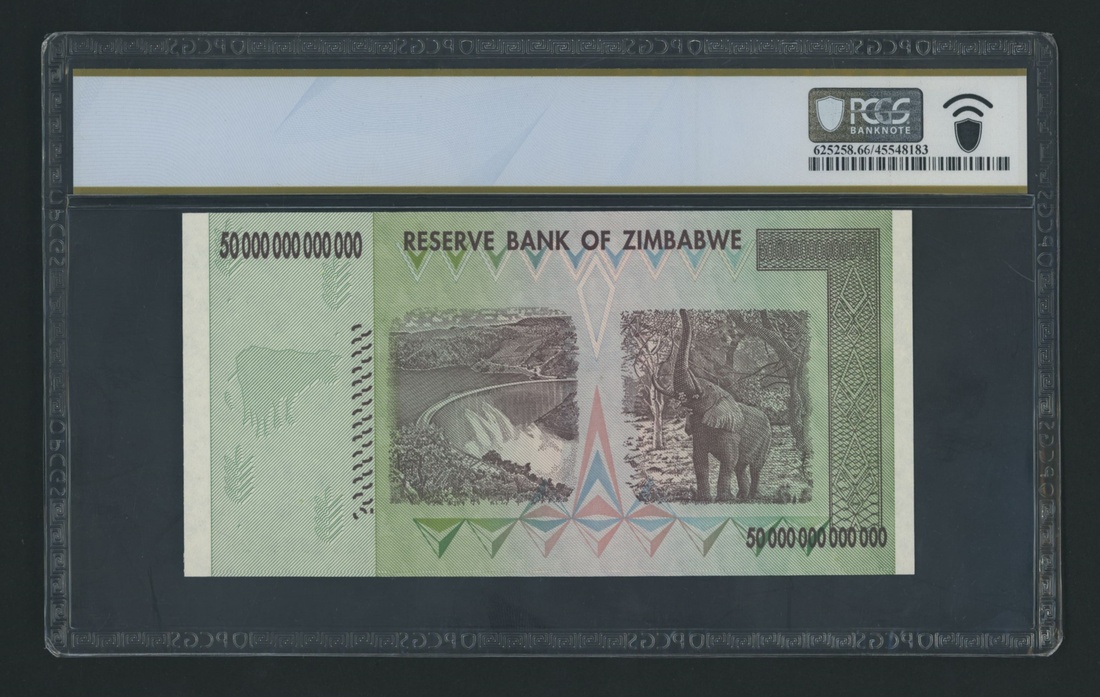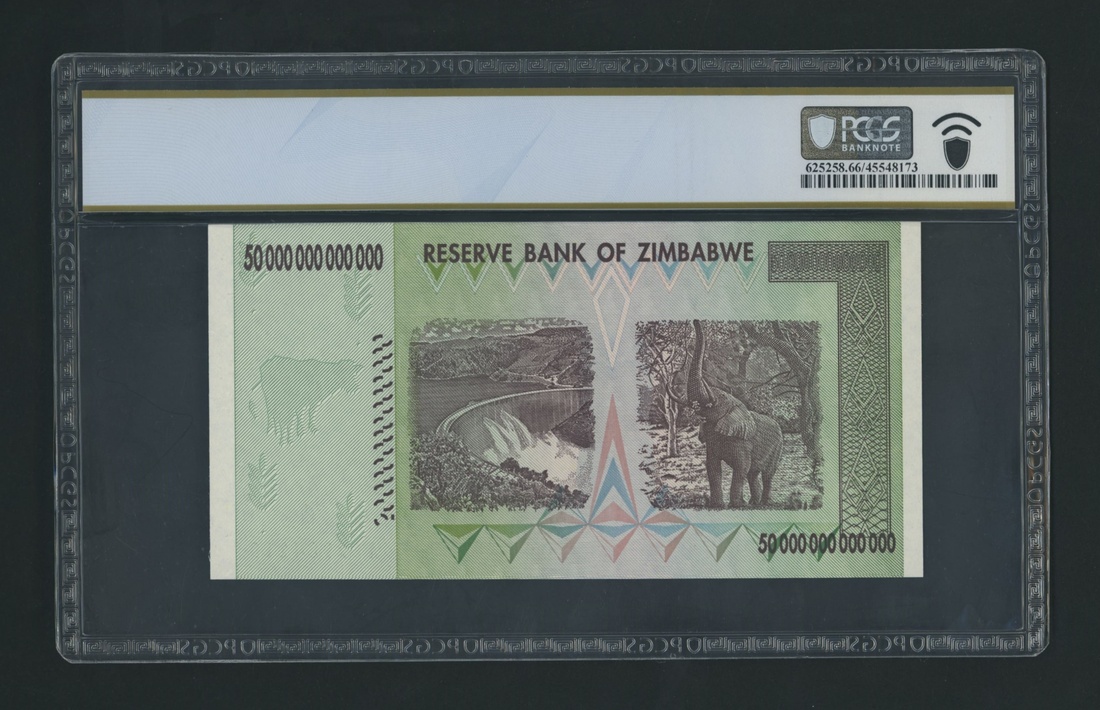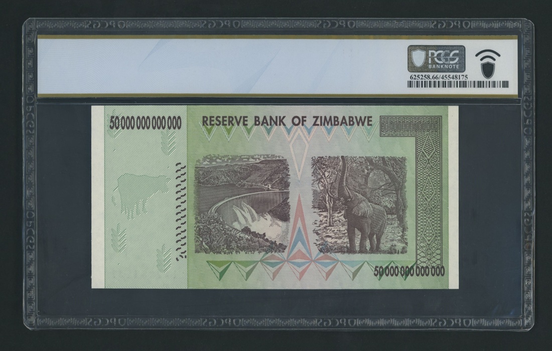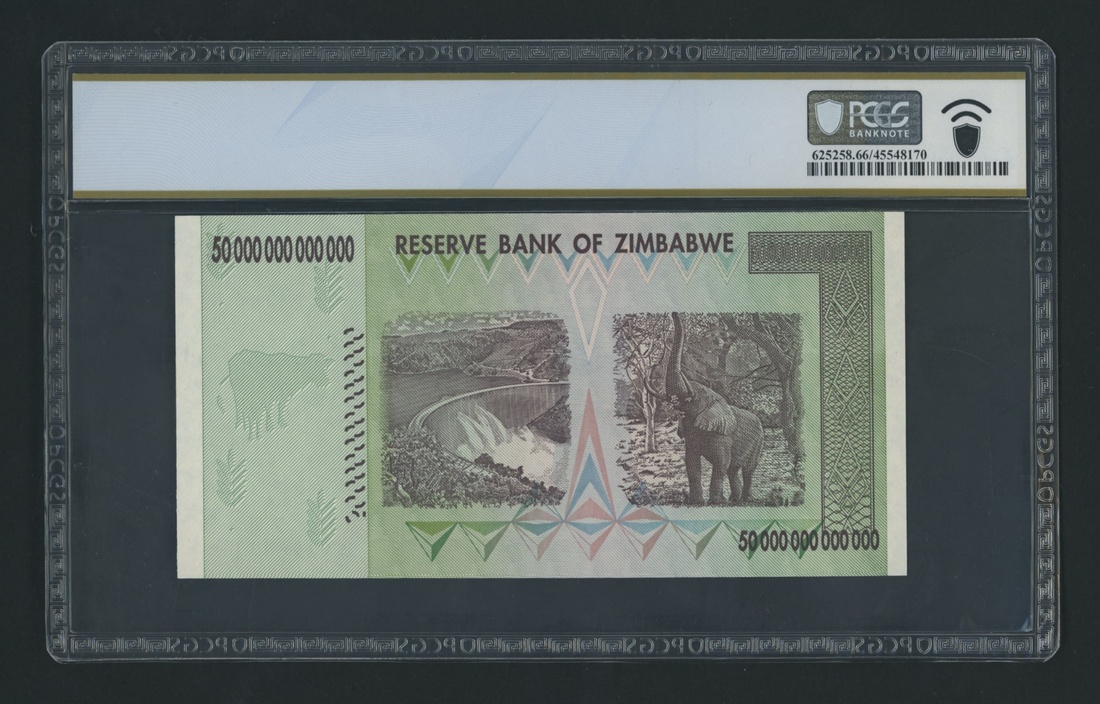 (x) Reserve Bank of Zimbabwe, [10 notes] 50,000,000,000,000, (2008), Prefix AA, mostly consecutive, (Pick 90, BNB 181), in PCGS holders 66 PPQ Gem Uncirculated (10 notes)