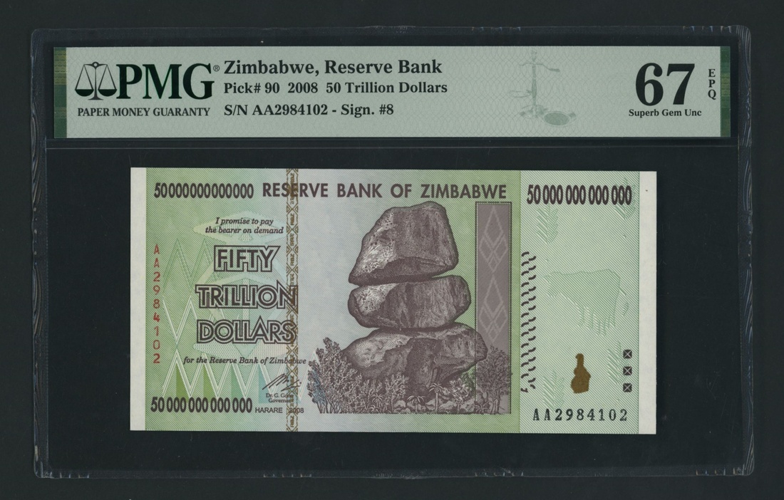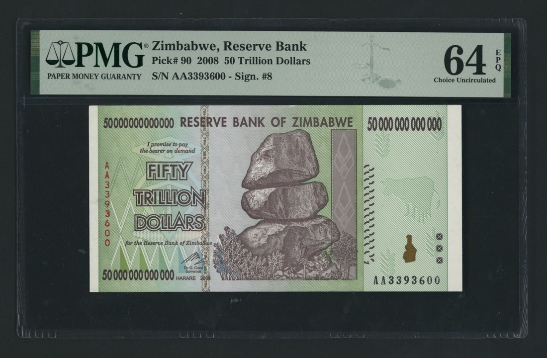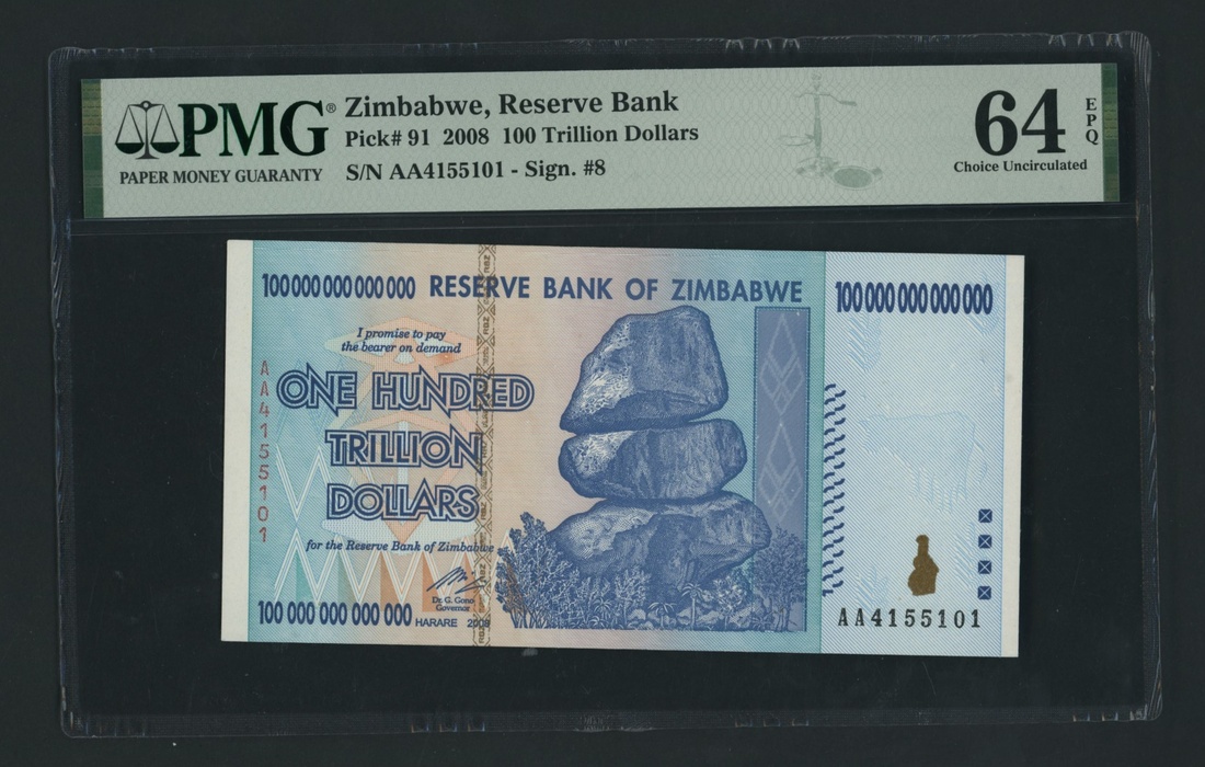 (x) Reserve Bank of Zimbabwe, [3 notes] 100,000,000,000,000, (2008), Prefix AA, also including 50T (2 notes)