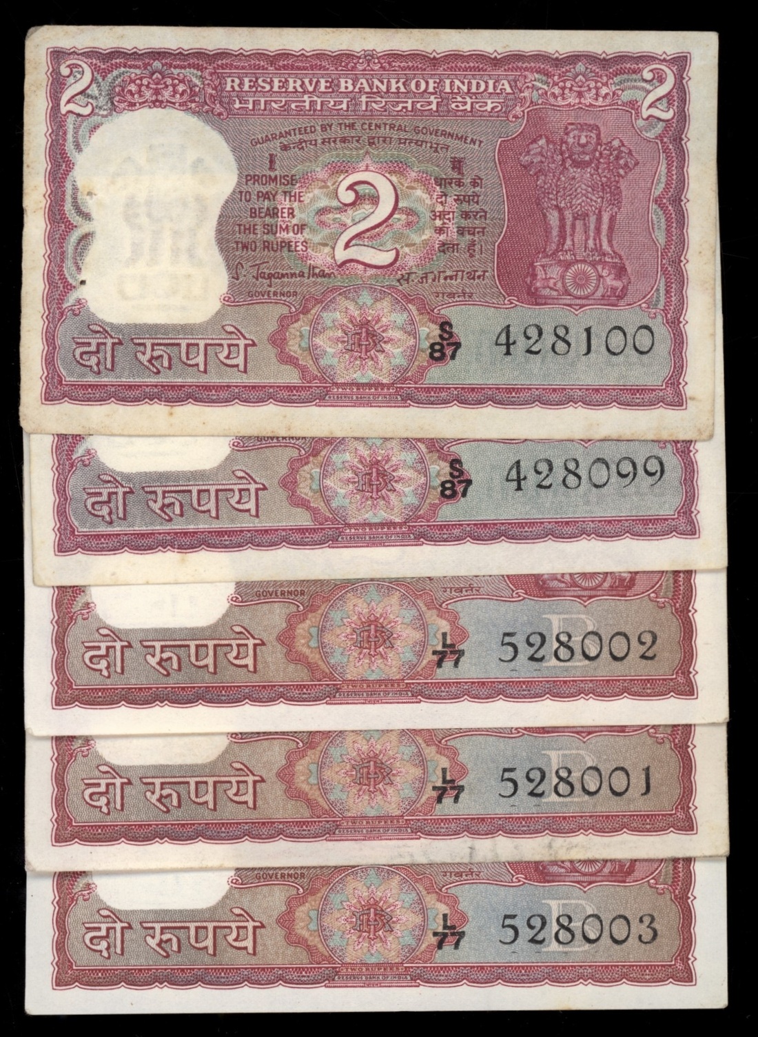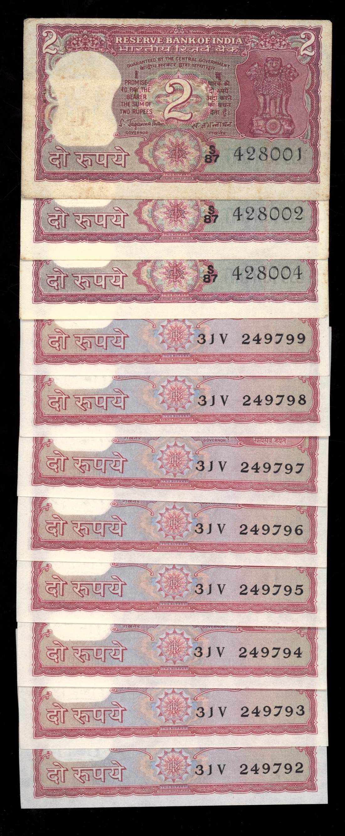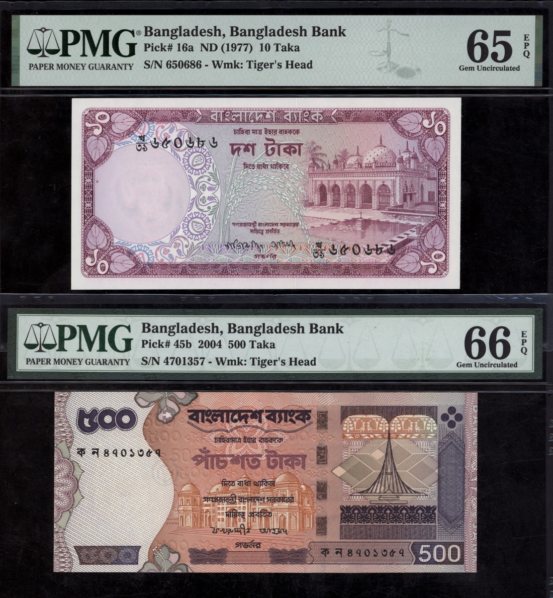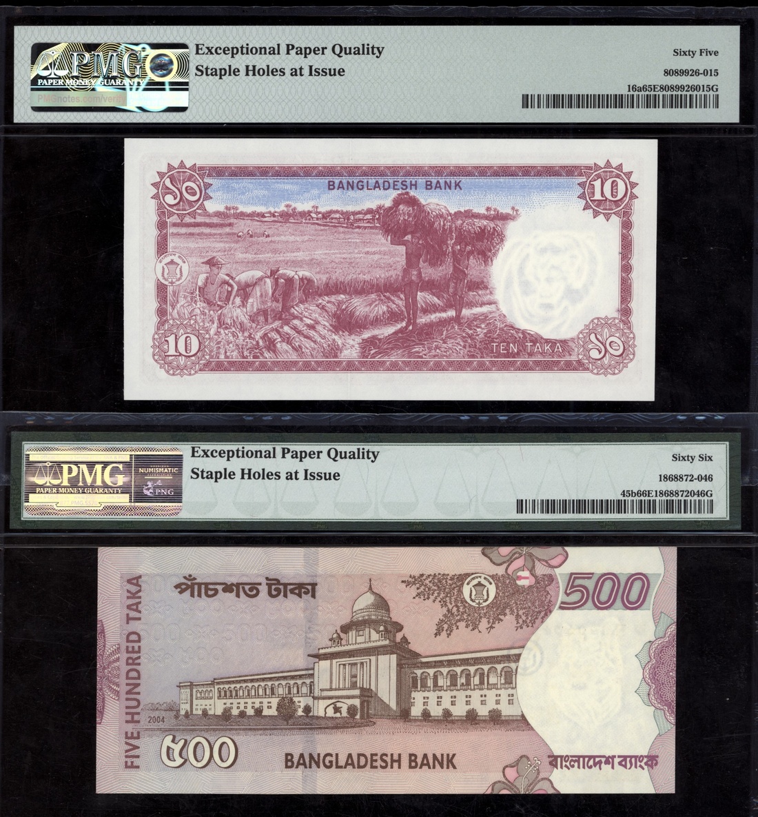 (x) Bangladesh Bank, Reserve Bank of India, [26 notes] 10, 500 Taka, 2 Rupees, 1970-2004,