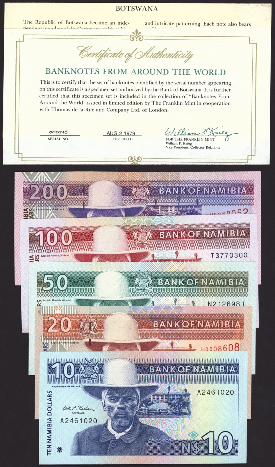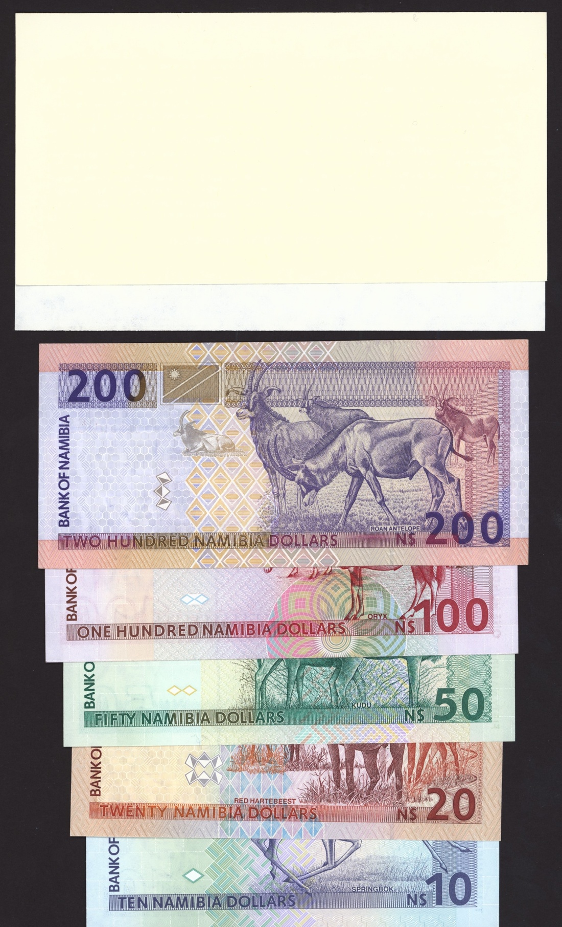 Bank of Namibia (5): $10, $20, $50, $100, $200, 1996-2003;