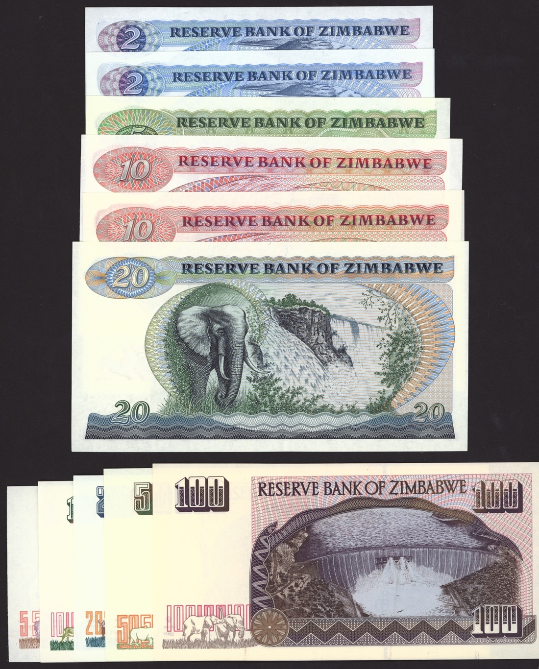 Reserve Bank of Zimbabwe (11): $2, $5, $10, $20, $50, $100, 1980-1995