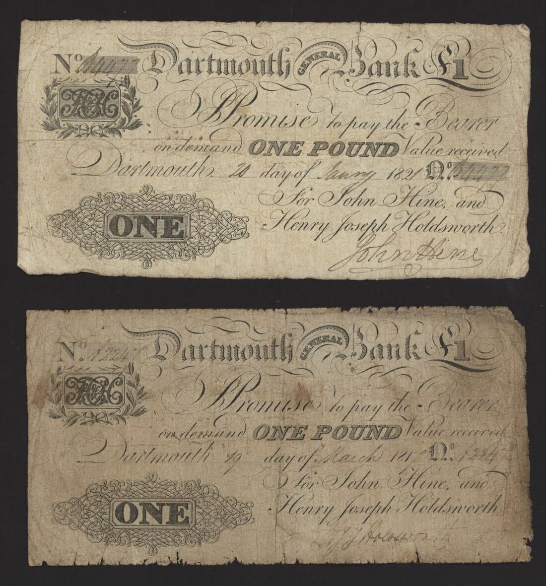 Dartmouth General Bank, [4 notes] £1, 1817-1823, all for John Hine and Henry Holdsworth,