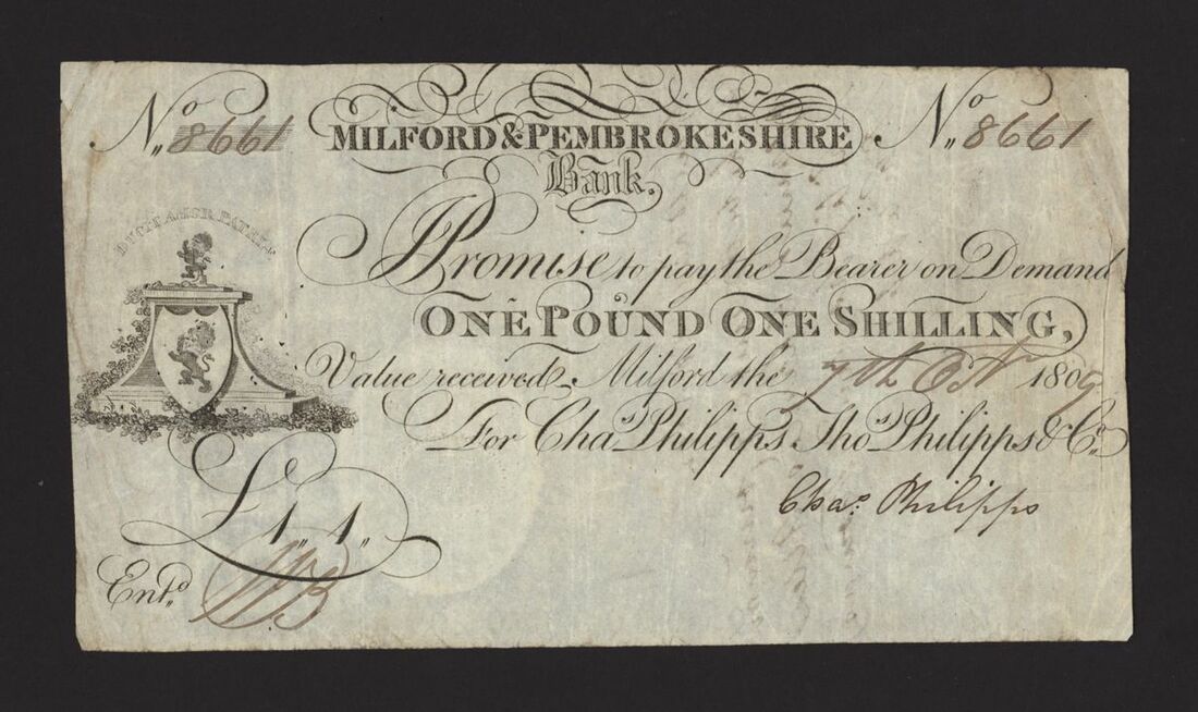 Milford & Pembrokeshire Bank: 1 Pound 1 Shilling (1 Guinea), 7 October 1809, no. 8661, for Philipps, Philipps & Co., signed Charles Philipps