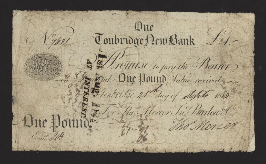 Tonbridge New Bank, £1, 25 September 1813, no. 7631, for Mercer, Barlow & Co., signed Thos. Mercer