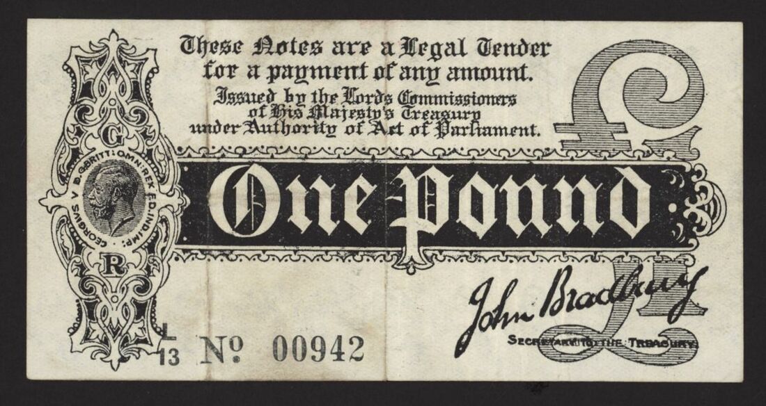 Treasury, £1, ND (1914), no. L/13 00942, J. Bradbury, sideways watermark