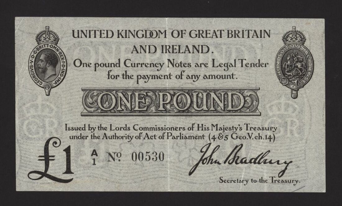 Treasury, £1, ND (1914), no. A/1 00530, J. Bradbury, first run