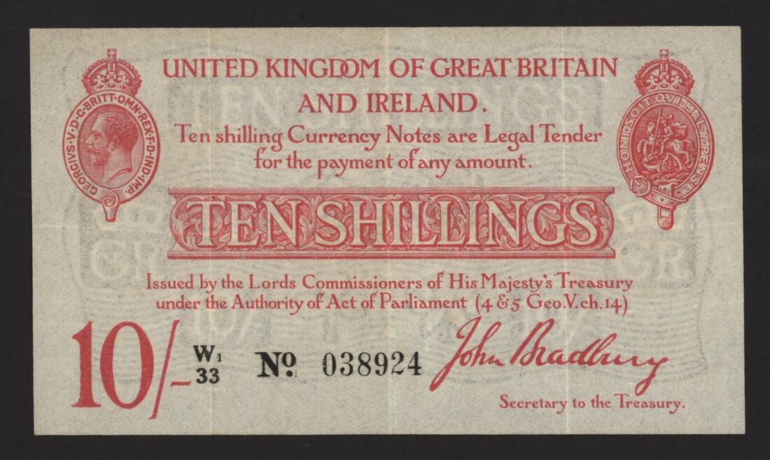 Treasury, 10 Shillings, ND (1915), no. W1/33 038924, J. Bradbury, (Pick 348a, EPM T13.2), good very fine