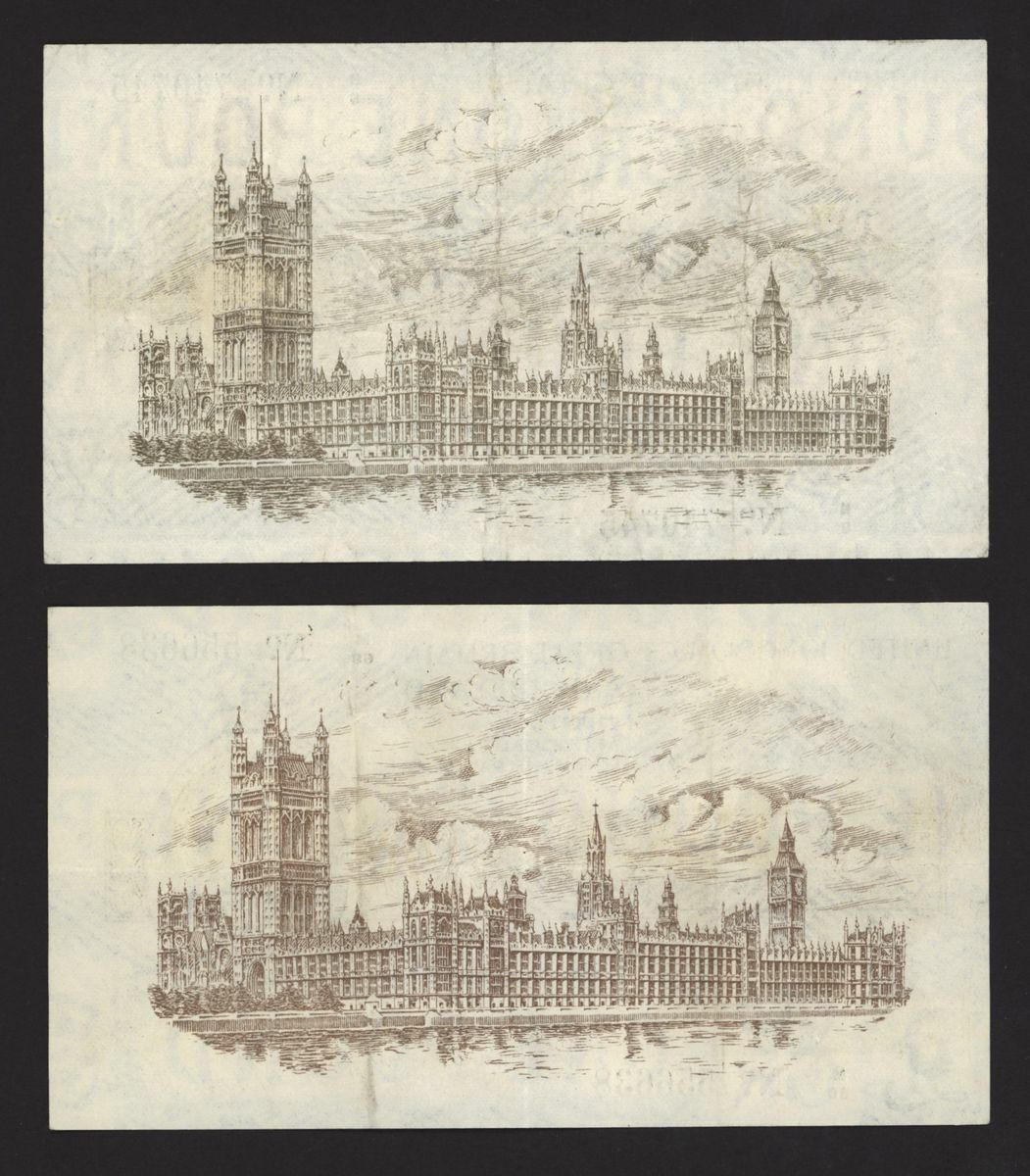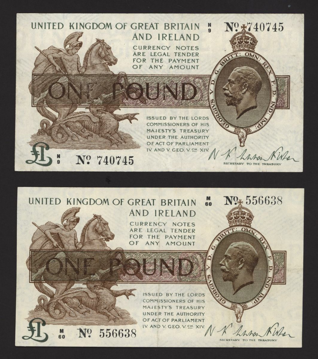 Treasury, [2 notes] £1, ND (1919), N. F. Warren Fisher, no. M/60 556638, no. N/9 740745