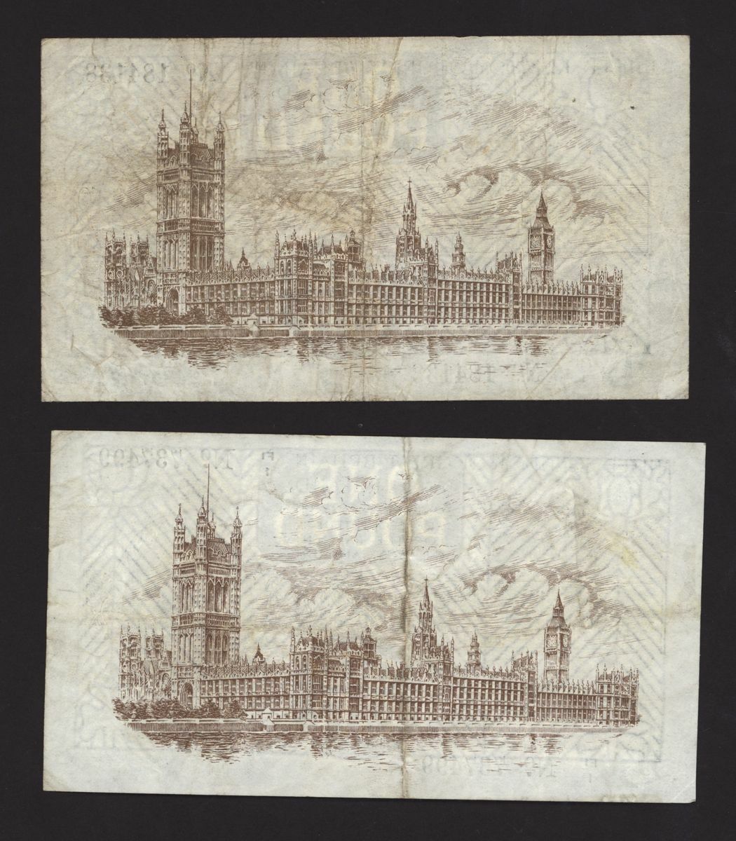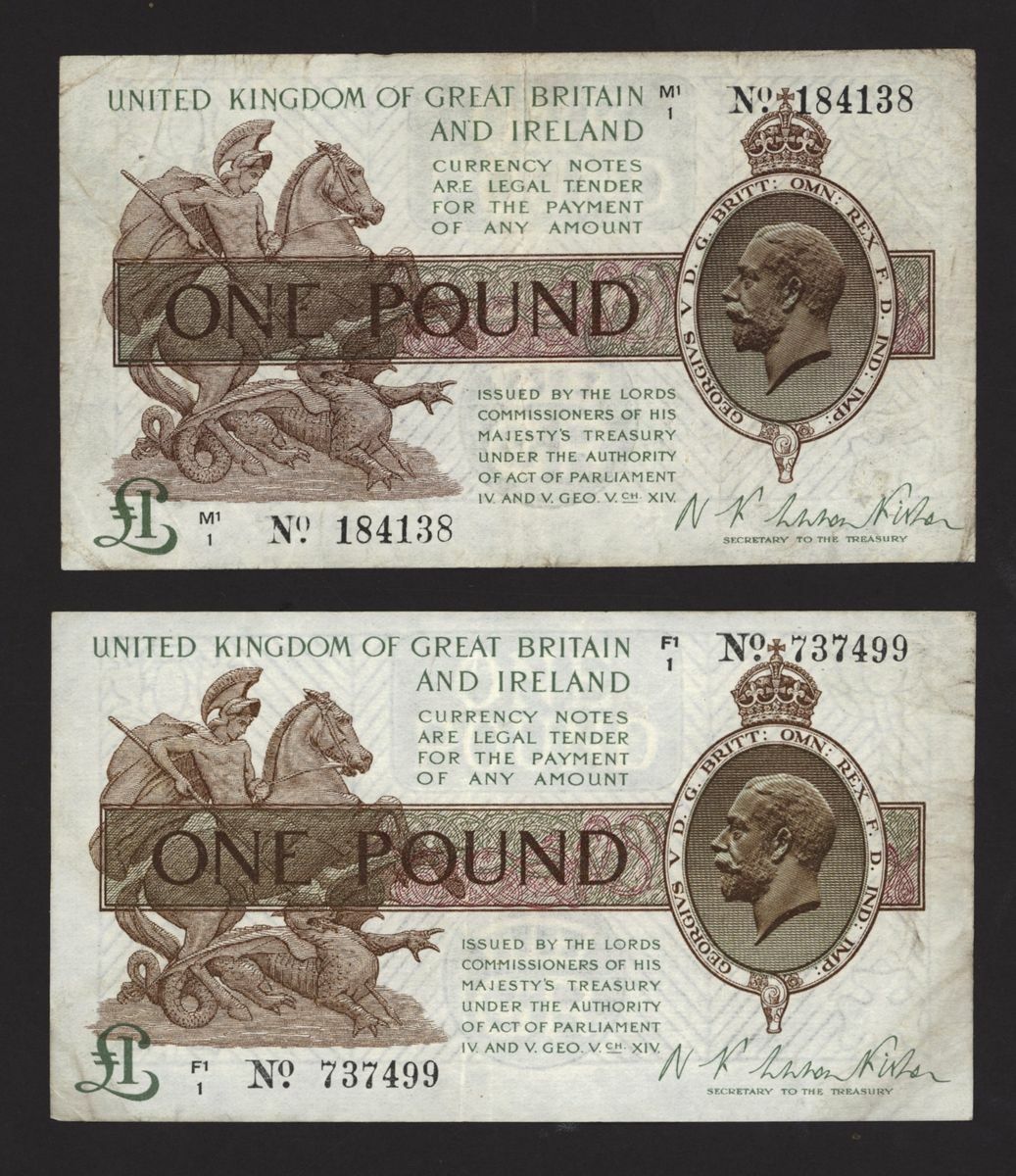 Treasury, [2 notes] £1, ND (1923), N. F. Warren Fisher, no. F1/1 737499, no. M1/1 184138