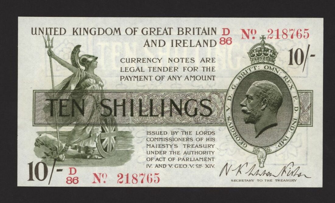 Treasury, 10 Shillings, ND (1919), no. D/86 218765, N. F. Warren Fisher, (Pick 356, EPM T25), good extremely fine