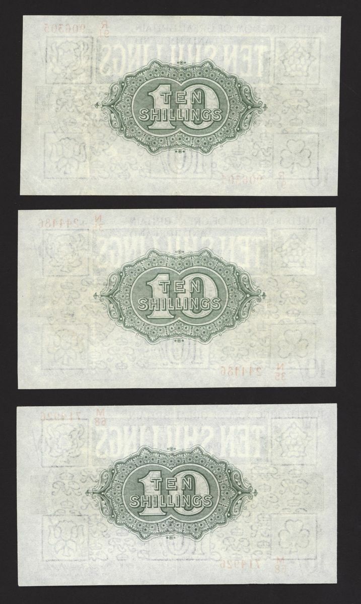 Treasury, [3 notes] 10 Shillings, ND (1922), N. F. Warren Fisher, no. M/68 714926, no. N/35 244486, and no. R/91 906305