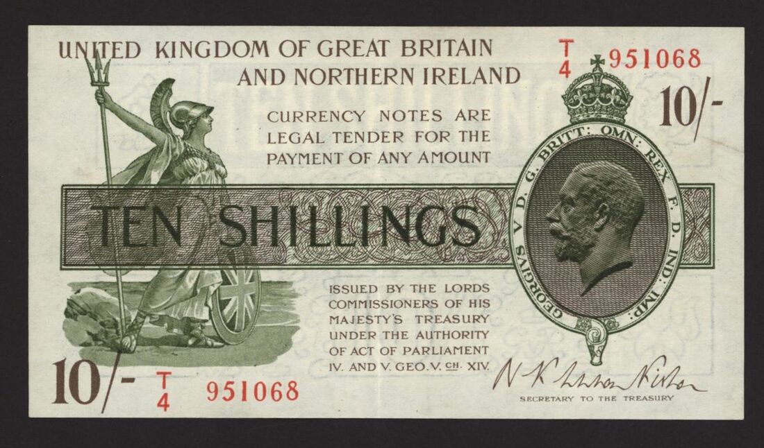 Treasury, 10 Shillings, ND (1927), no. T/4 951068, N. F. Warren Fisher, (Pick 360, EPM T33), about extremely fine