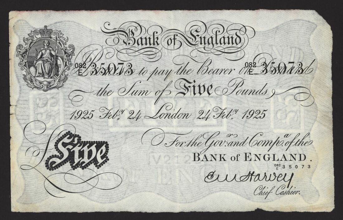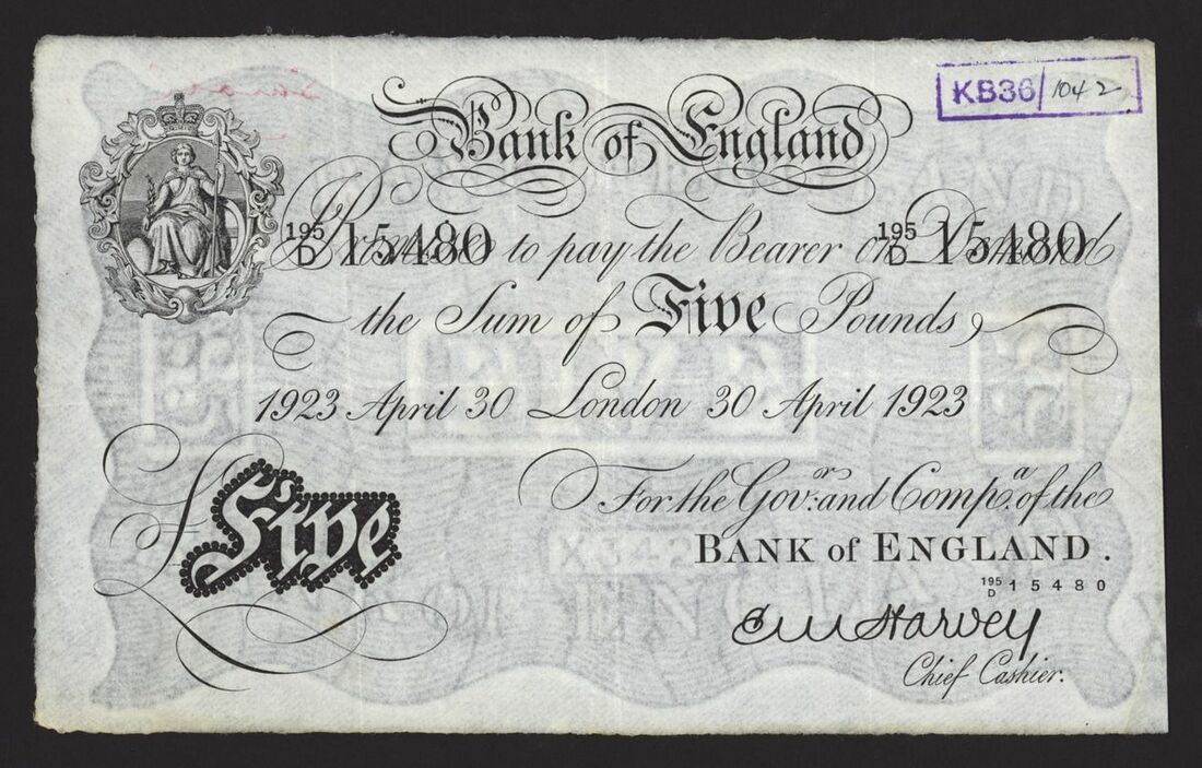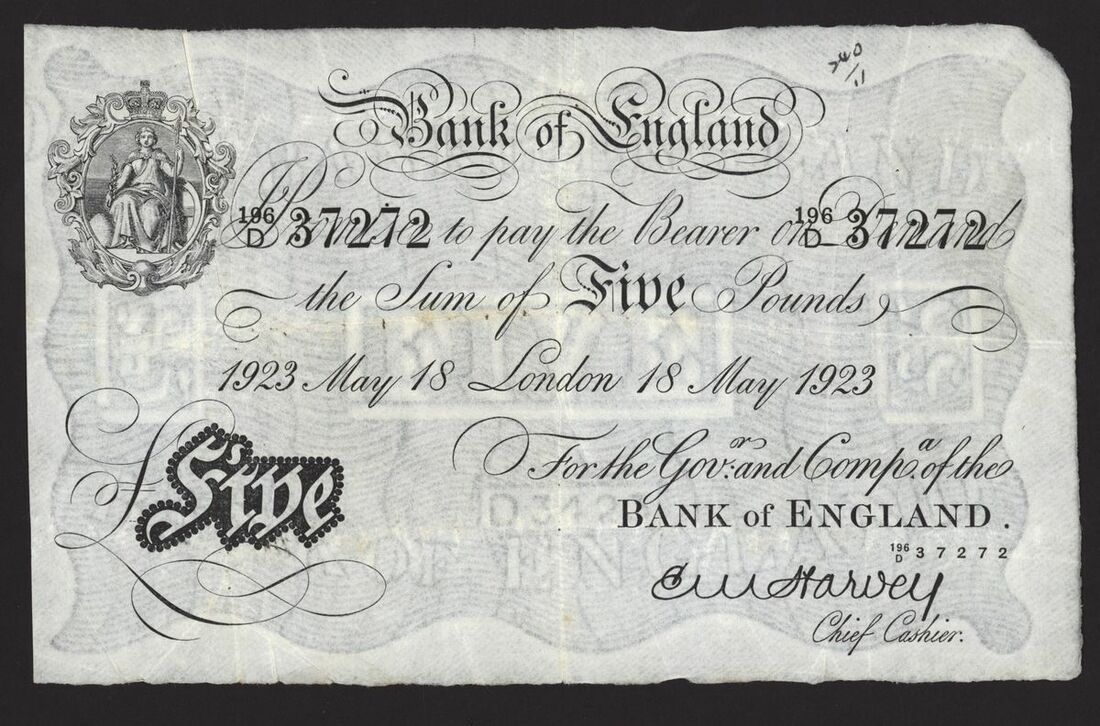 Bank of England, White Note, [3 notes] £5, London, 1923-1925, E. M. Harvey, 30 April 1923, no. 196/D 37272; 18 May 1923, no. 195/D 15480, 24 February 1925, no. 082/E 35073