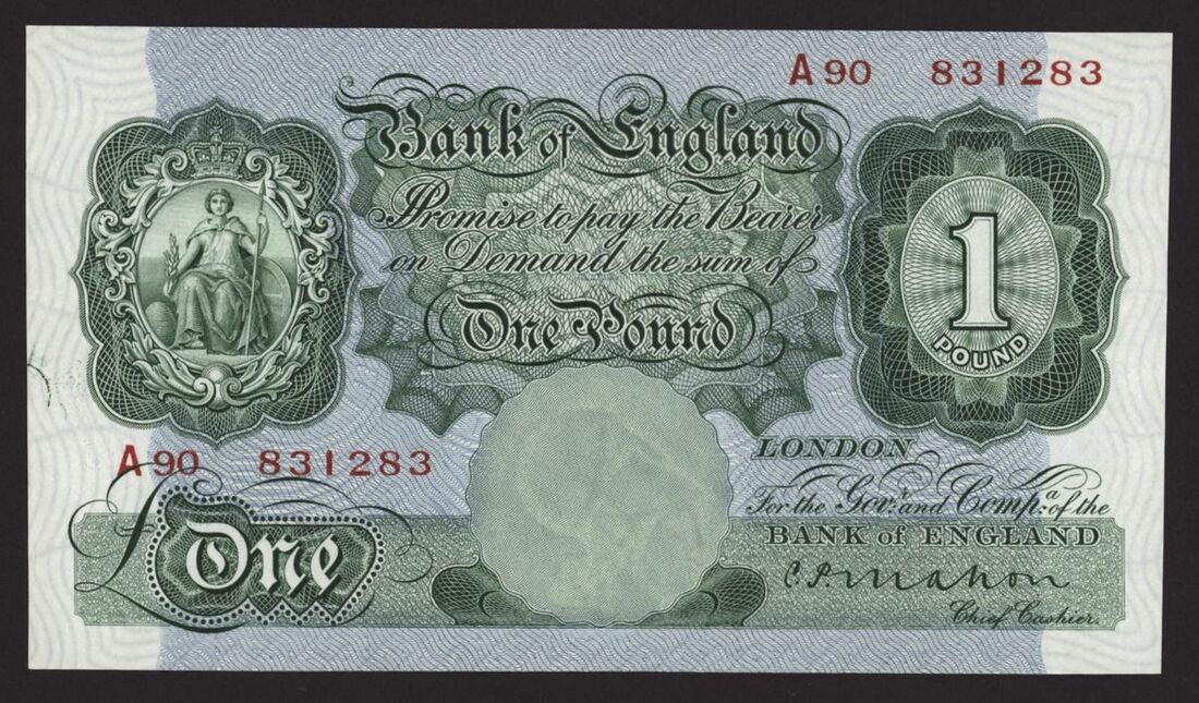 Bank of England, £1, London, ND (1928-29), no. A90 831283, C. P. Mahon, first issue first series