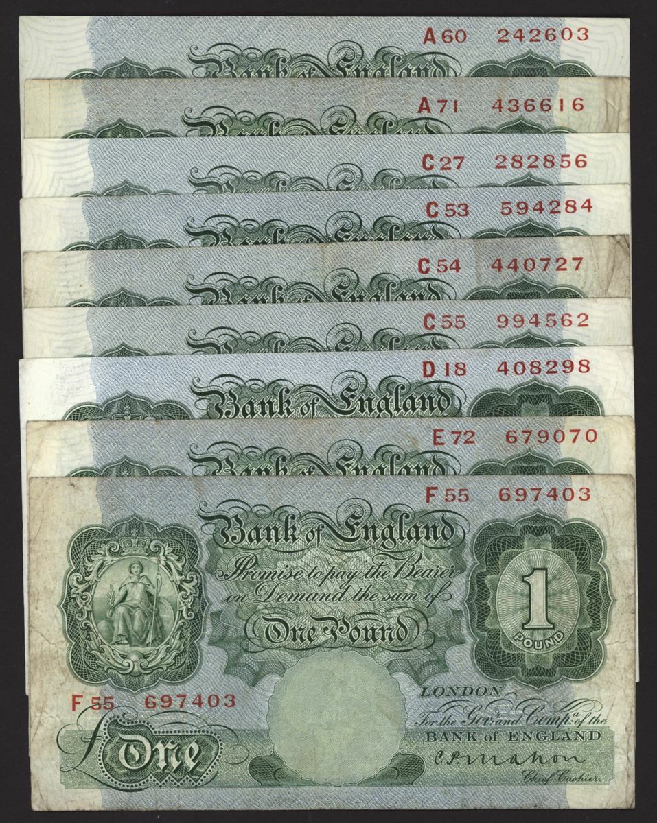 Bank of England, [9 notes] £1, London, ND (1928-29), C. P. Mahon, first issue,
