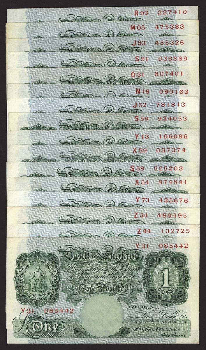 Bank of England, [16 notes] £1, London, ND (1930), B. G. Catterns, (Pick 363b, EPM B225), about very fine (16 notes)