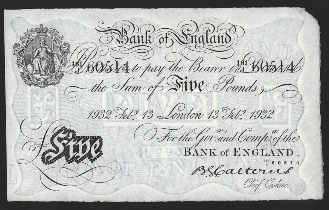 Bank of England, White Note, £5, London, 13 February 1932, no. 161/J 60514, B. G. Catterns, (Pick 328a, EPM B228), extremely fine