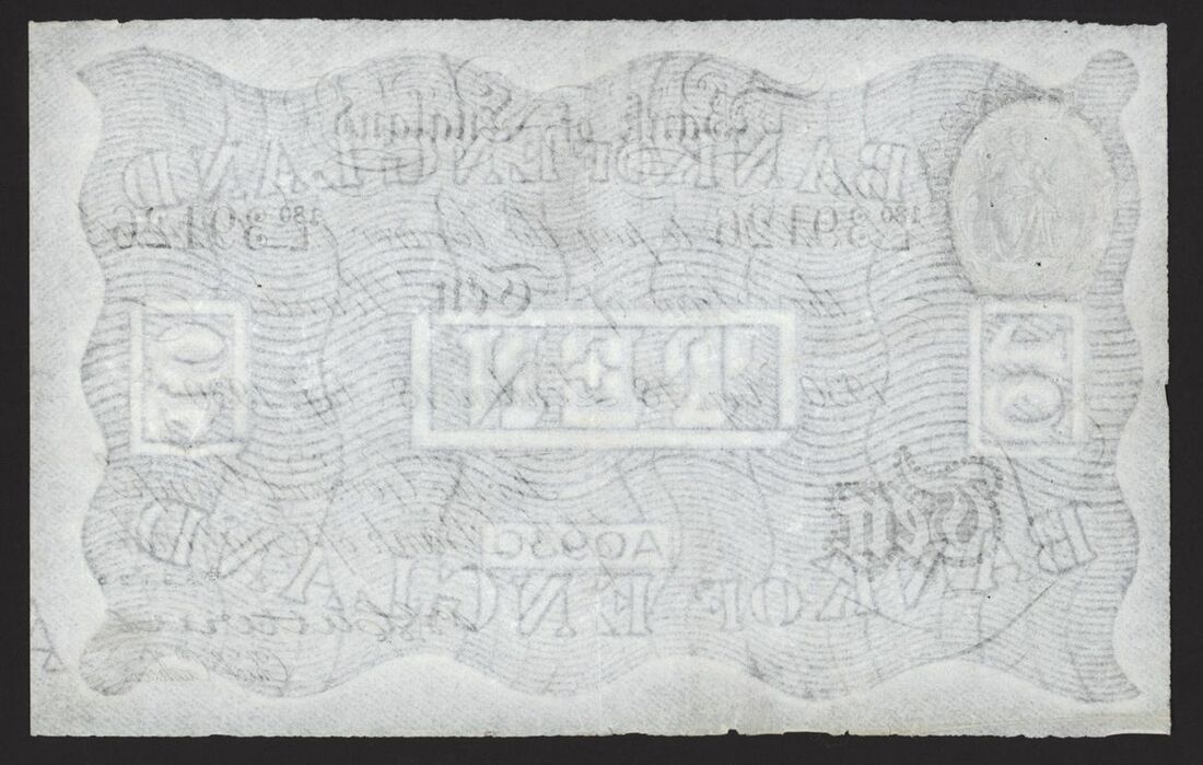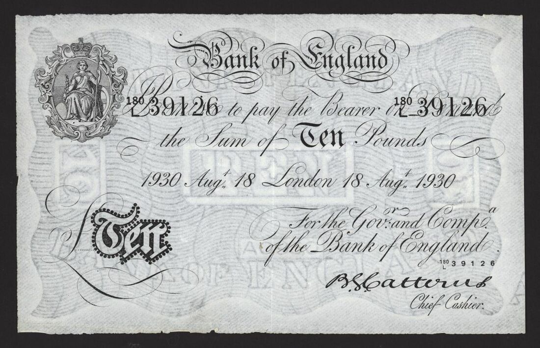 Bank of England, White Note, German forgery, £10, London, 18 August 1930, no. 180/L 391126, B. G. Catterns, Nazi-produced counterfeit note created by concentration camp prisoners as part of Operation Bernhard
